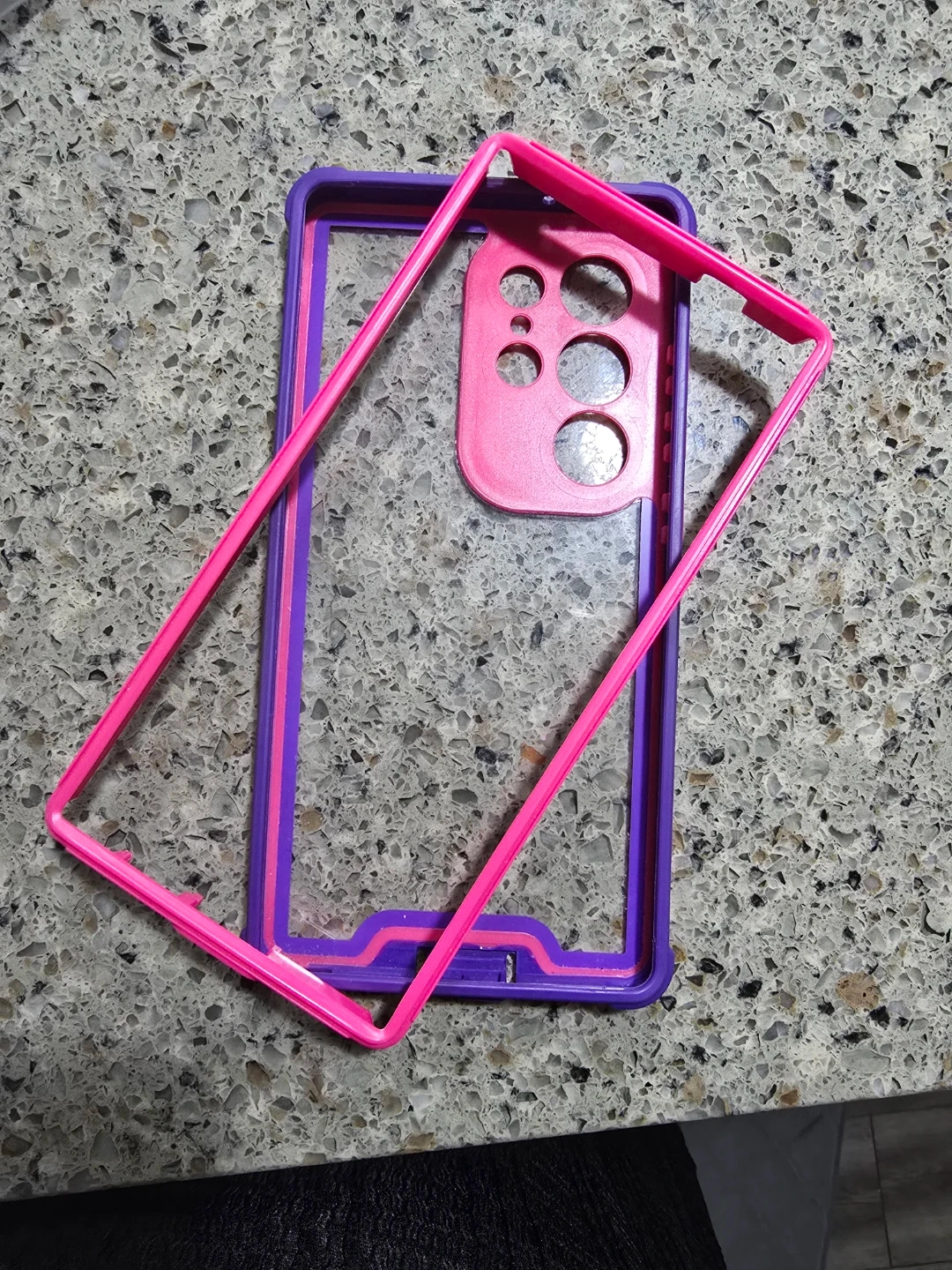This phone case is designed for the Samsung Galaxy S23 Ultra. It's a two-piece protective case with a clear back and a colourful bumper. The case offers good protection for your phone.