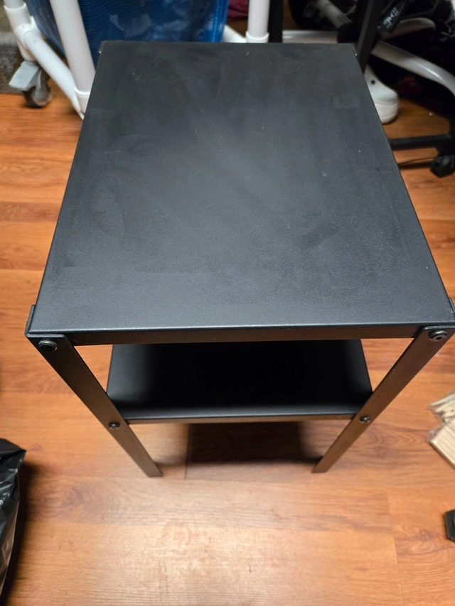 Selling an IKEA KNARREVIK steel-frame side table in black. Compact and sturdy design, perfect for use as a bedside table, small stand, or extra storage shelf. Lightweight yet stable, great for small spaces or minimal setups (26×36×45 cm). Sturdy steel frame, compact size perfect for tight spaces or bedside use, and a two-tier design for extra storage. Simple modern look matches most room styles. Condition: Used - Good. For Sale By: Owner.