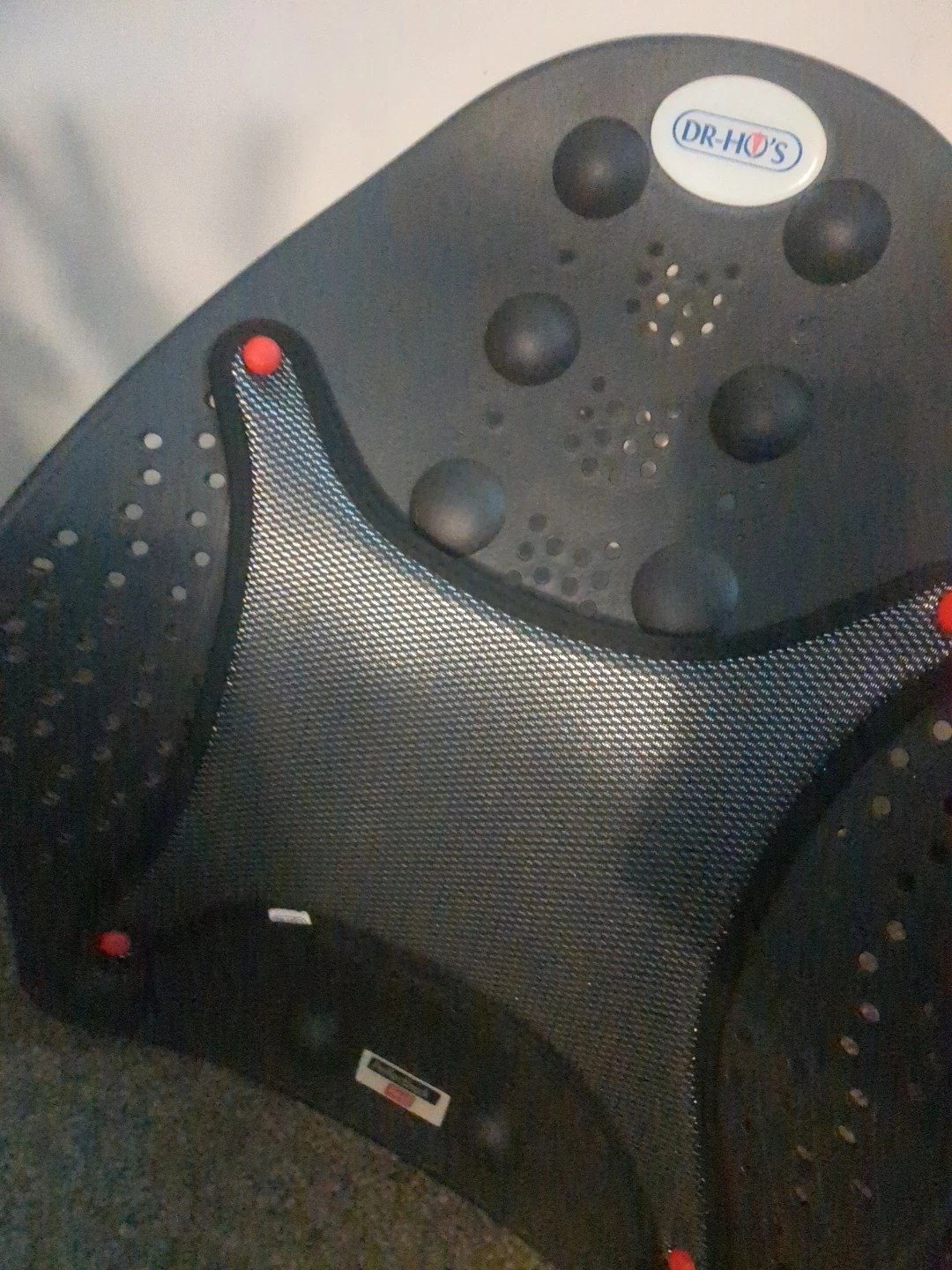This is a Dr. Ho's back support brace. It's designed with multiple massage nodes for comfort. The brace is black and features adjustable straps for a secure fit.