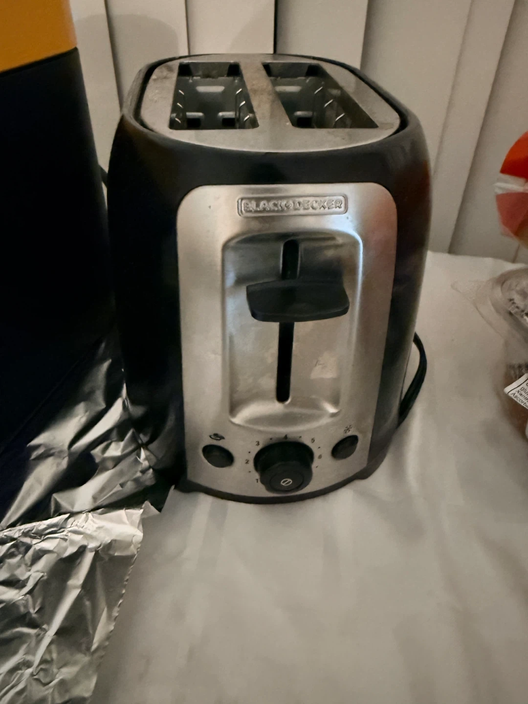 Selling a Black+Decker toaster in good condition! It's perfect for making toast, bagels, and more. It features multiple settings for different browning levels, so you can get your toast just the way you like it