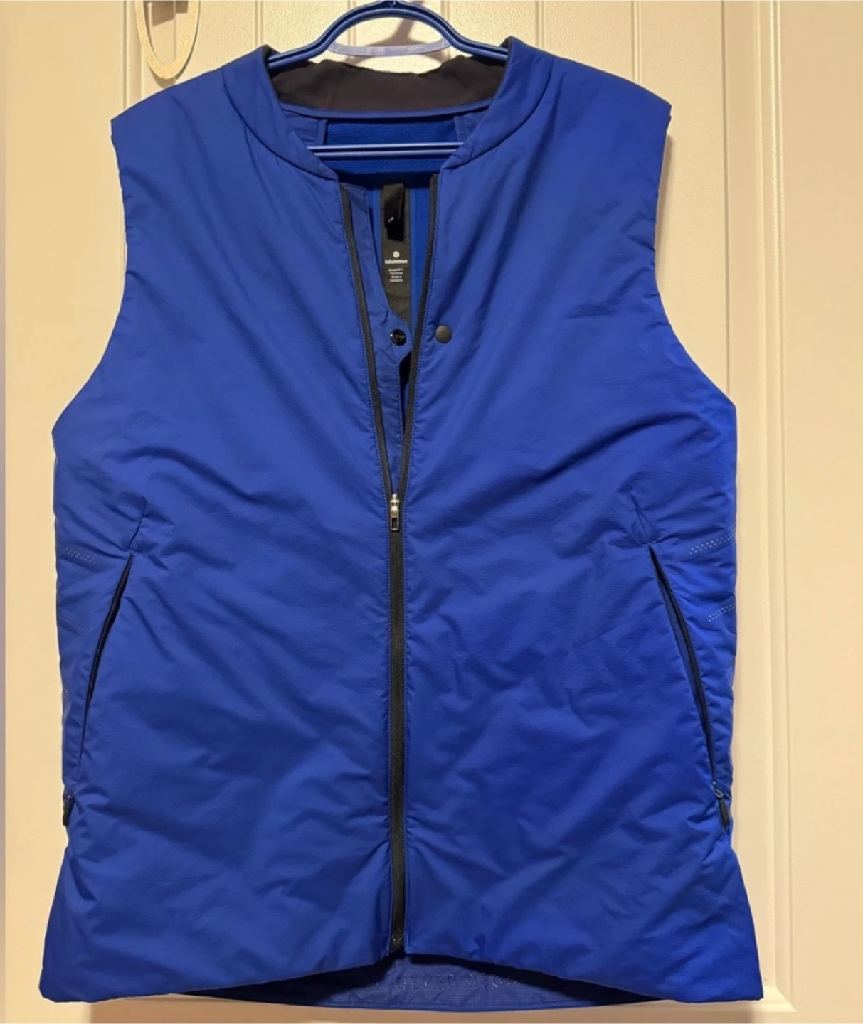 Selling a Lululemon men's vest in a vibrant blue colour. It's in great condition and ready for its next owner. The size is L/G. Perfect for layering or wearing on its own during milder weather!