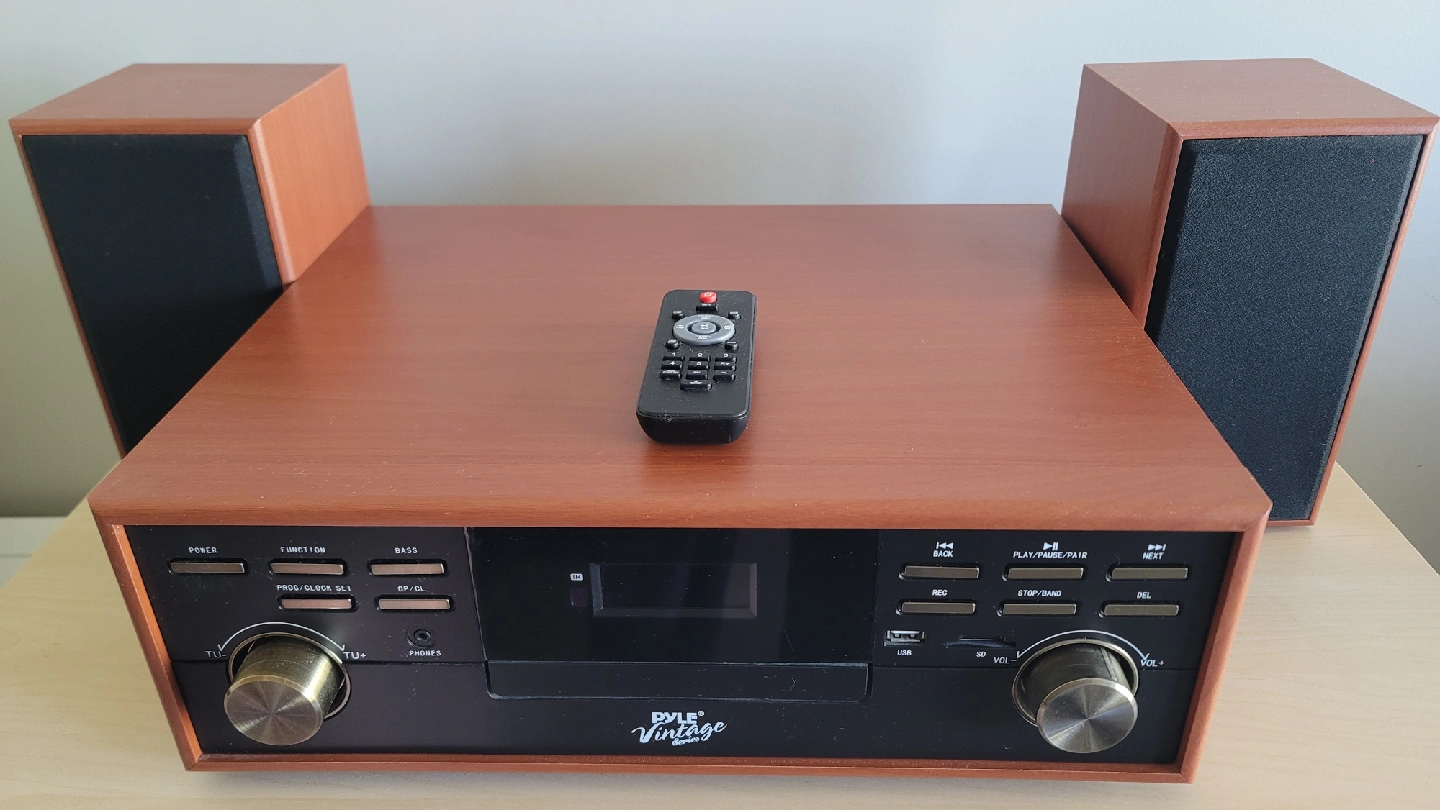 60Selling a Pyle Vintage Style Turntable with Speakers. The turntable is in great condition and comes with a remote control. Enjoy your vinyl records with this stylish and functional turntable!