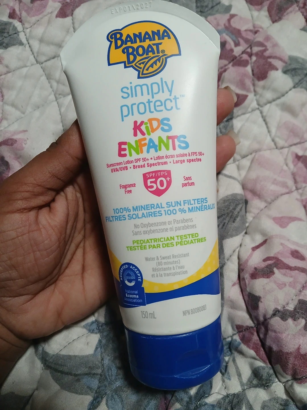 This Banana Boat Simply Protect sunscreen lotion is for kids and offers SPF 50+ protection. It's formulated with 100% mineral sun filters and is fragrance-free. The lotion is water and sweat resistant for up to 80 minutes and is pediatrician tested. It's also free of oxybenzone and parabens. Price is firm plz. Pick up midland and Danforth or 401 bay street. 01/2027
