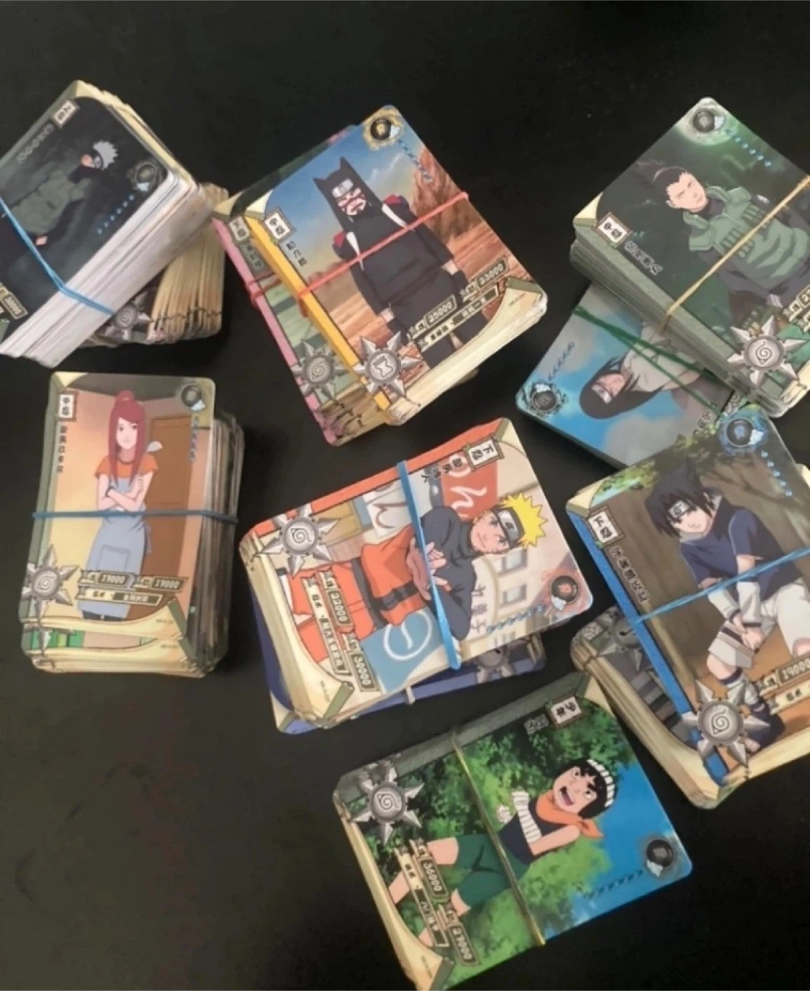 A collection of Naruto trading cards featuring various characters. These cards are great for fans of the series. 20 random naruto cards (no duplicates will be given)
