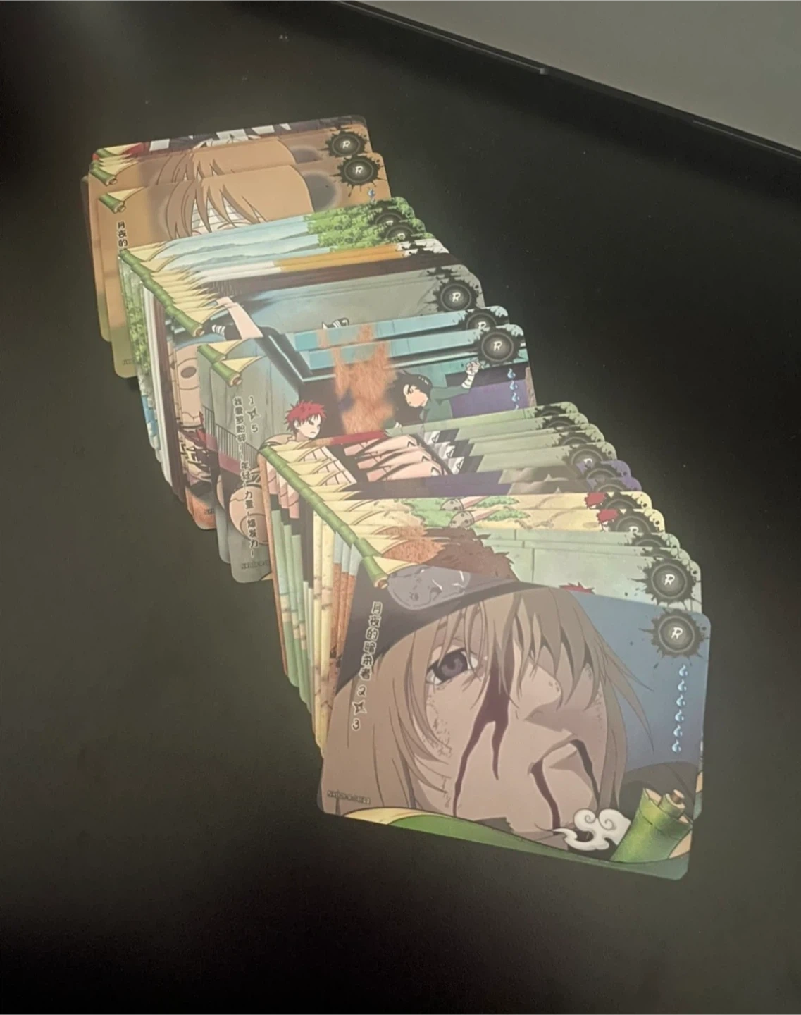 A collection of Naruto trading cards featuring various characters. These cards are great for fans of the series. 20 random naruto cards (no duplicates will be given)