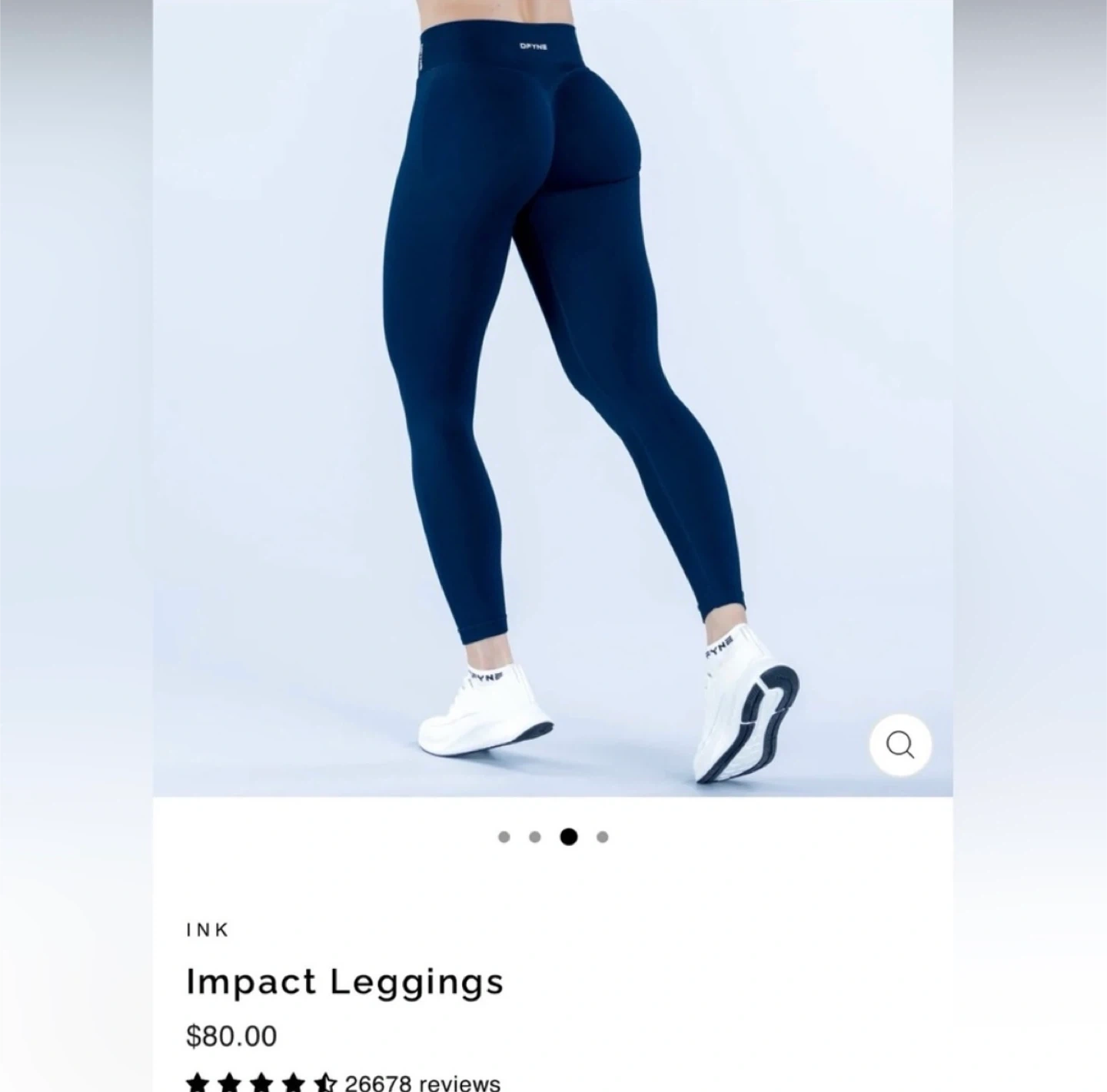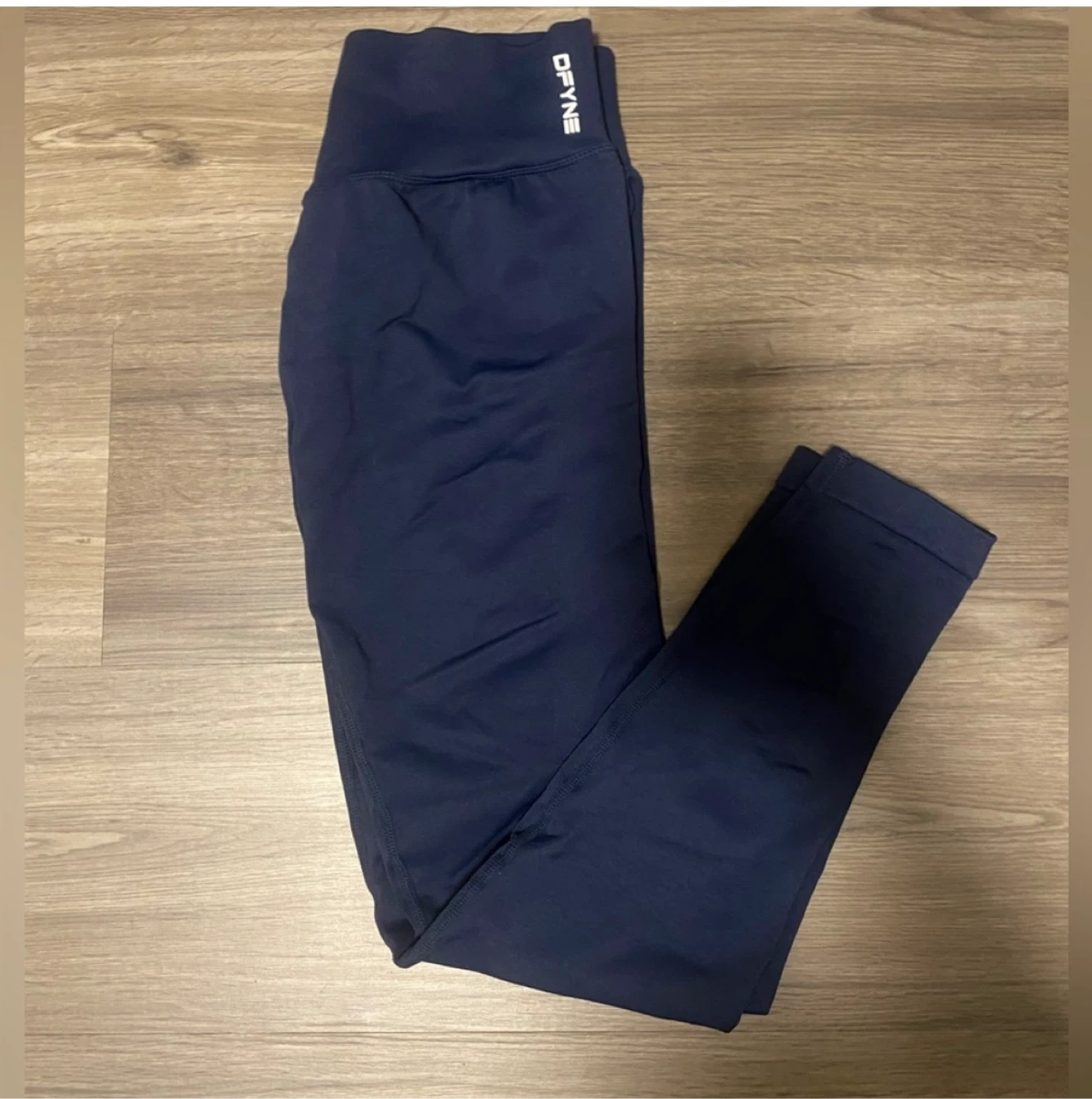 Stylish DFYNE Impact leggings. Color is ink, a deep navy blue. High-waisted design. Great for active wear. Seamless design, super smooth feel. Good for gym or just lounging around.
