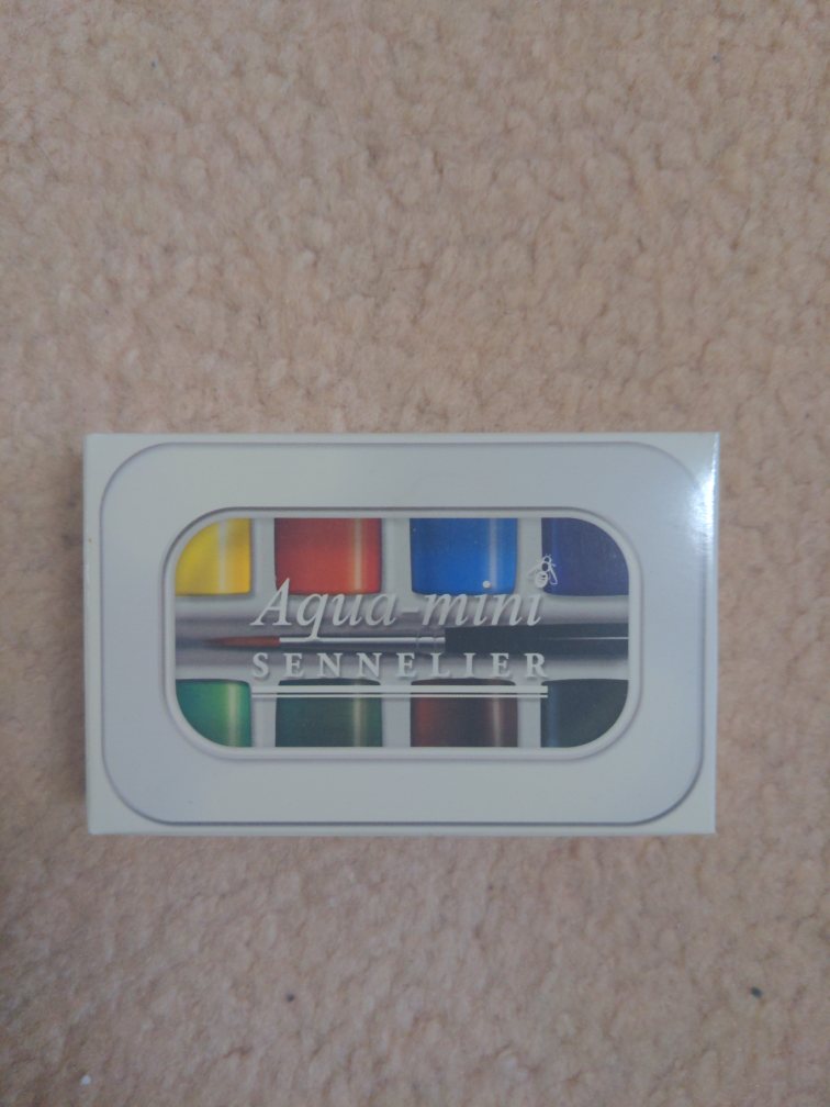 This is a Sennelier Aqua-Mini watercolour paint set. It includes 8 vibrant colours and a brush. New.