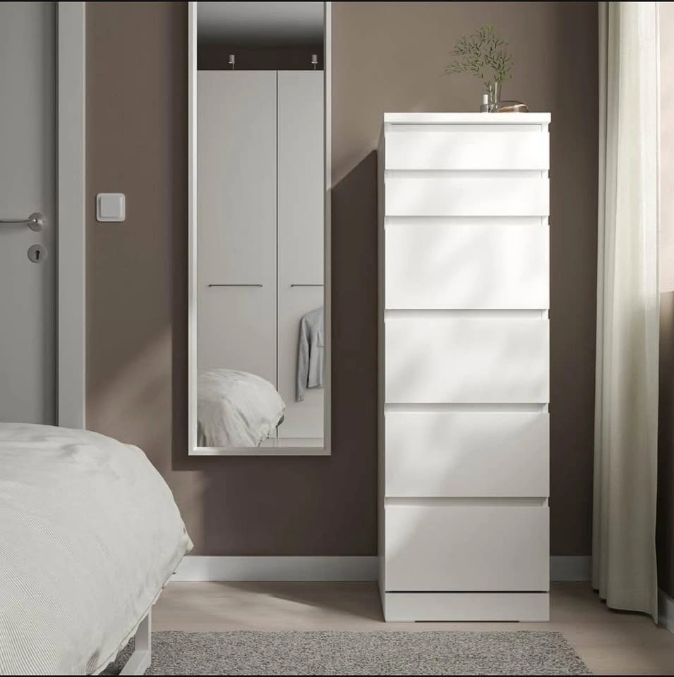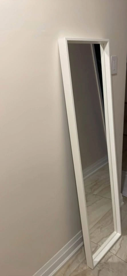 IKEA NISSEDAL white rimmed mirror in mint condition. It's only been used for a few months and has adjustable hinges.