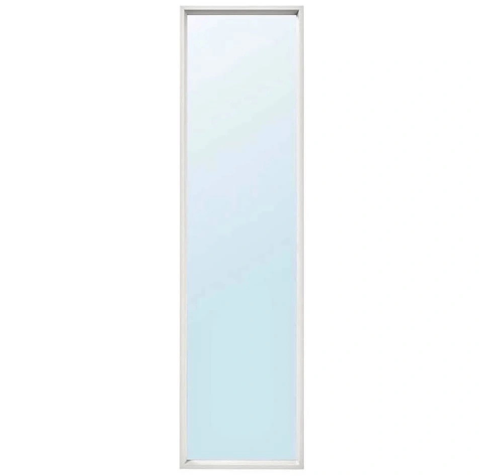 IKEA NISSEDAL white rimmed mirror in mint condition. It's only been used for a few months and has adjustable hinges.