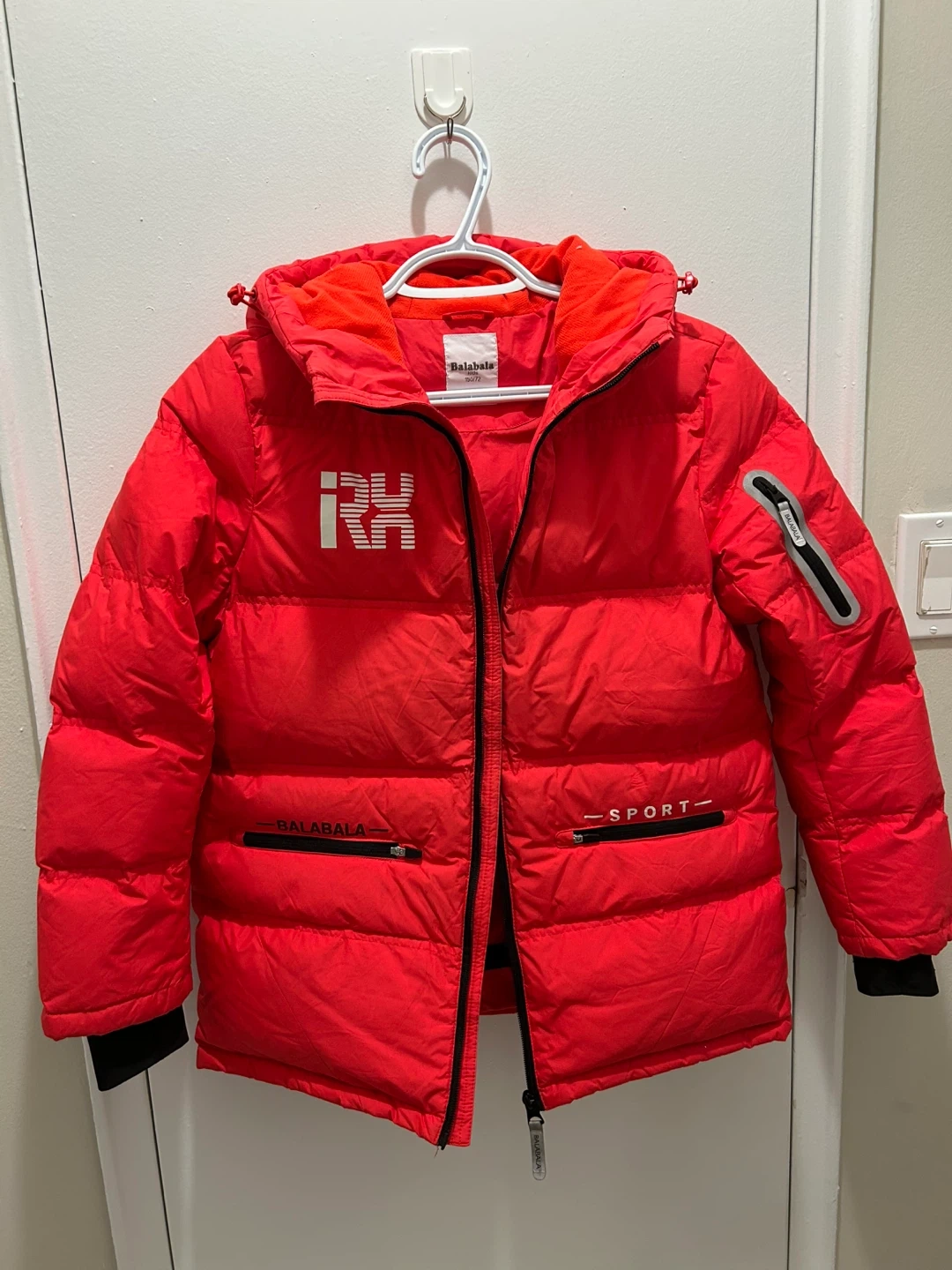 Selling this high-quality Balabala Kids winter puffer jacket in vibrant red. Very warm and perfect for active kids! This is a down jacket.