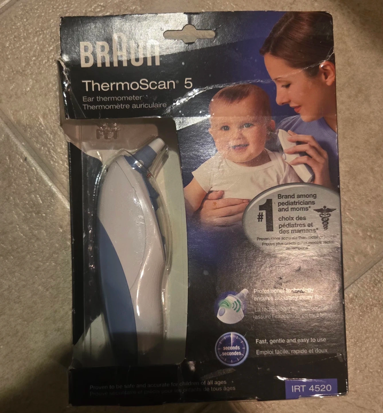 This is a Braun ThermoScan 5 ear thermometer. It features professional technology for accurate readings every time. It's fast, gentle, and easy to use.