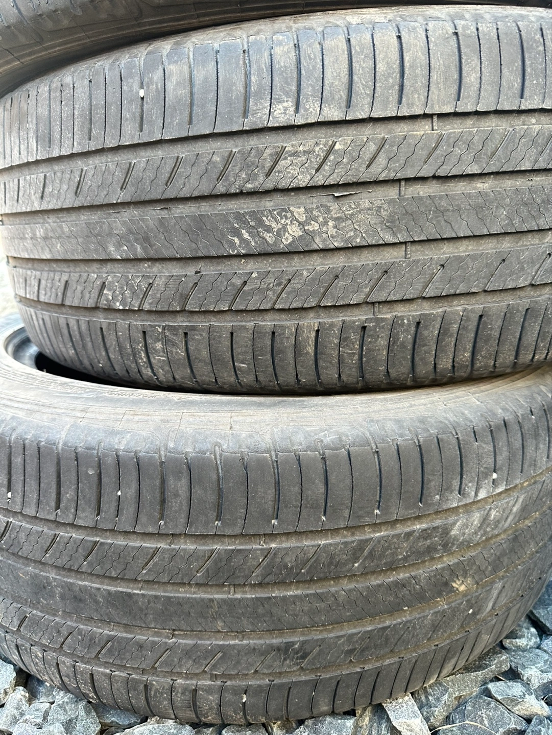 4 used Michelin Premier all-season tires. Size 215/50/R17 95V XL . Tread depth shown in image. 4 and 5/32. Good for summer still. Or as spares or temporary use if your passing a safety or something.