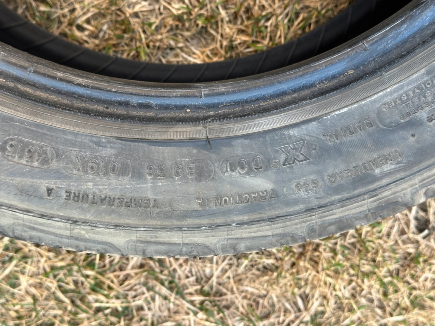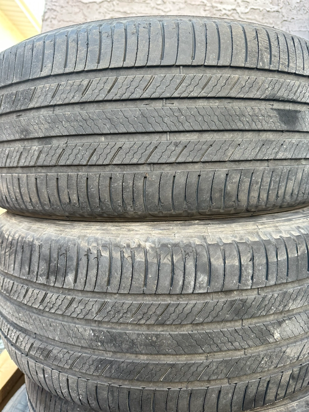 4 used Michelin Premier all-season tires. Size 215/50/R17 95V XL . Tread depth shown in image. 4 and 5/32. Good for summer still. Or as spares or temporary use if your passing a safety or something.