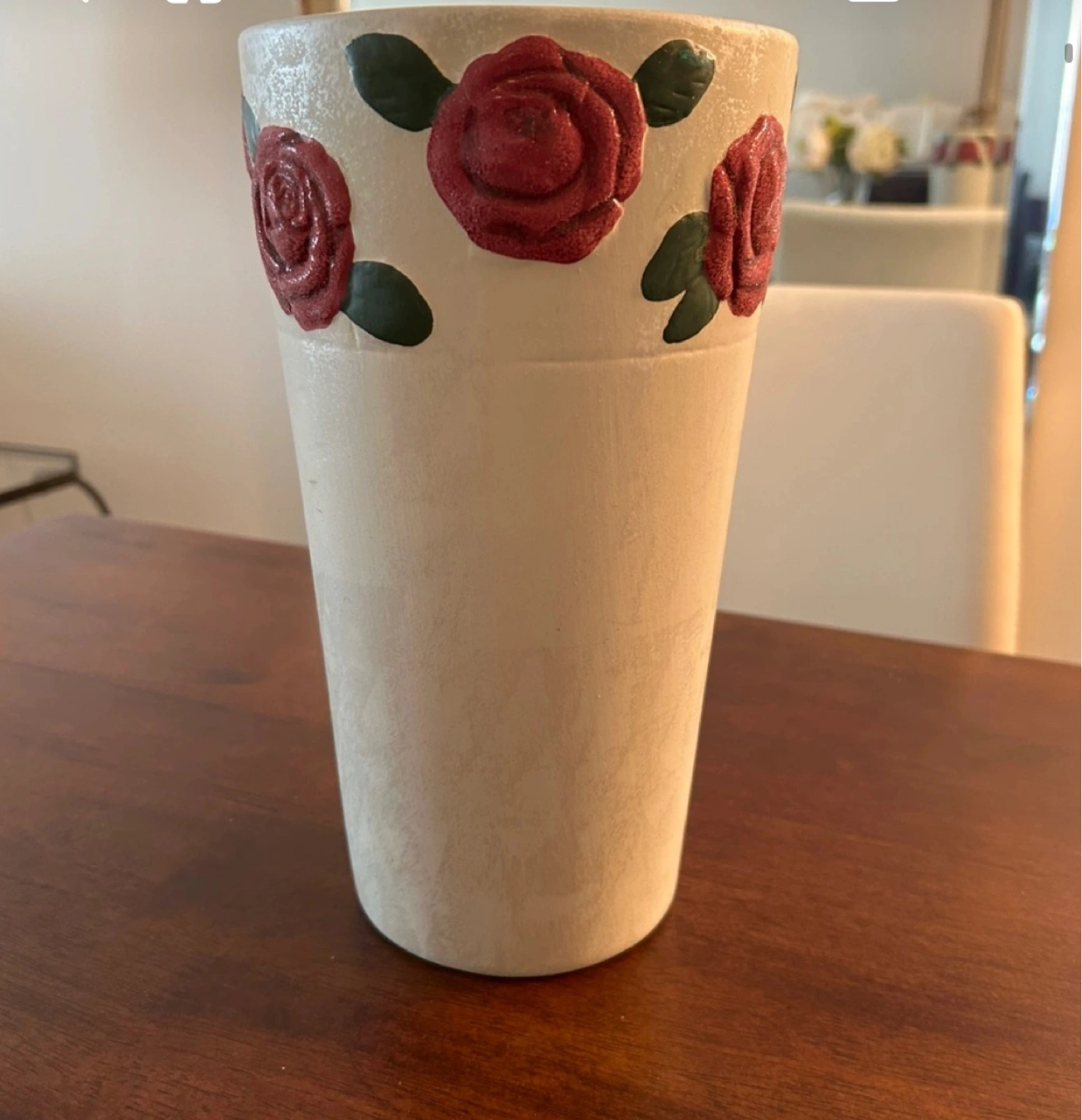 A cute vase with a floral design! It's perfect for adding a touch of charm to any room. The vase is in great condition and ready to brighten up your space