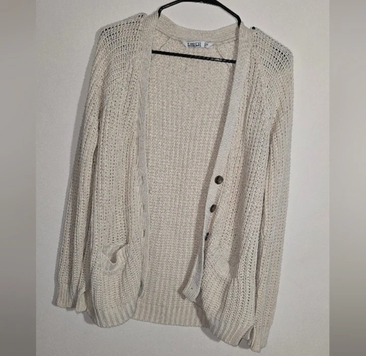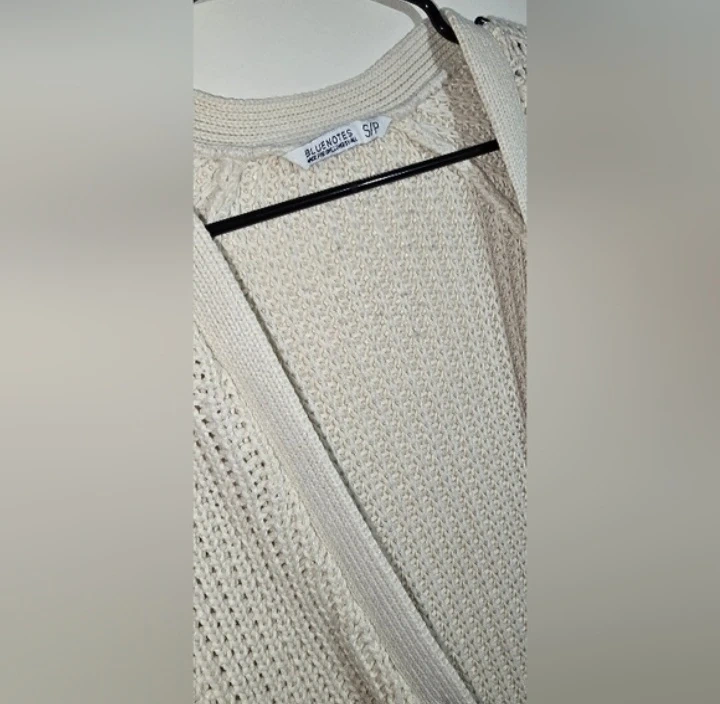 Cozy up in this Bluenotes cream-coloured knit cardigan! It's a size small and perfect for layering. Great for adding a touch of warmth and style to any outfit!