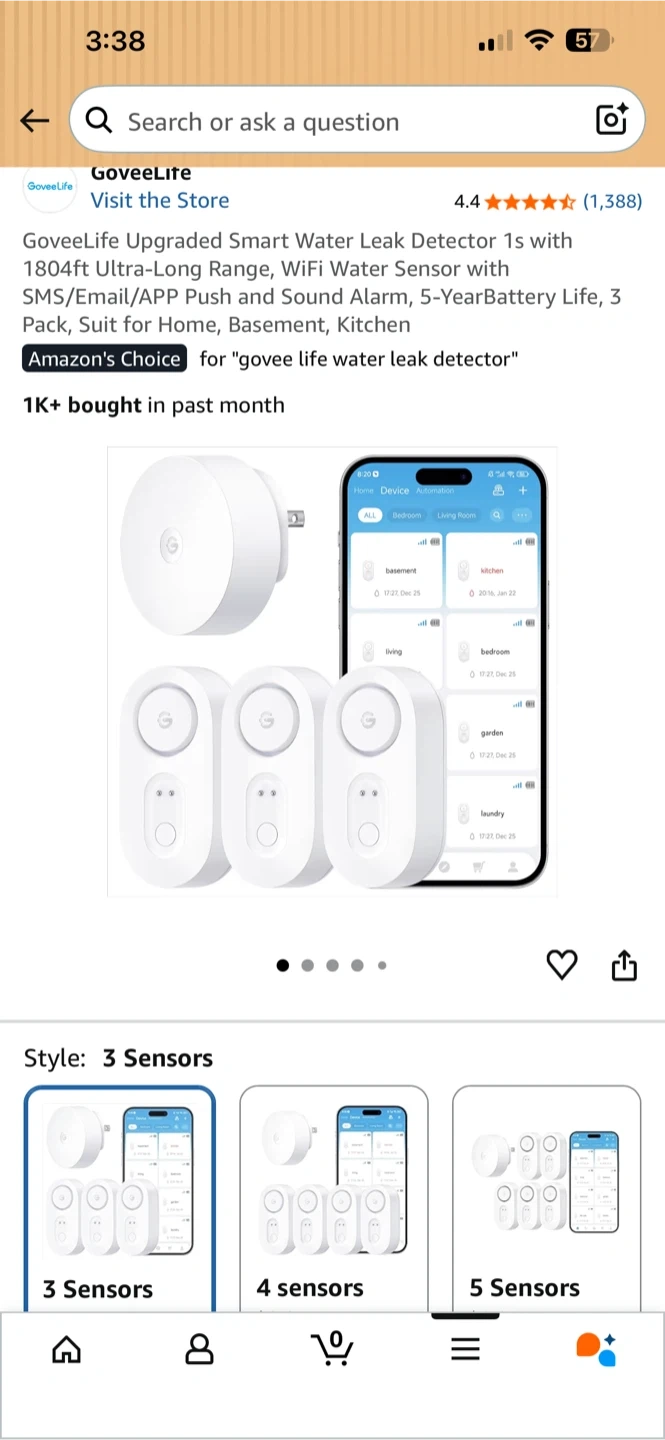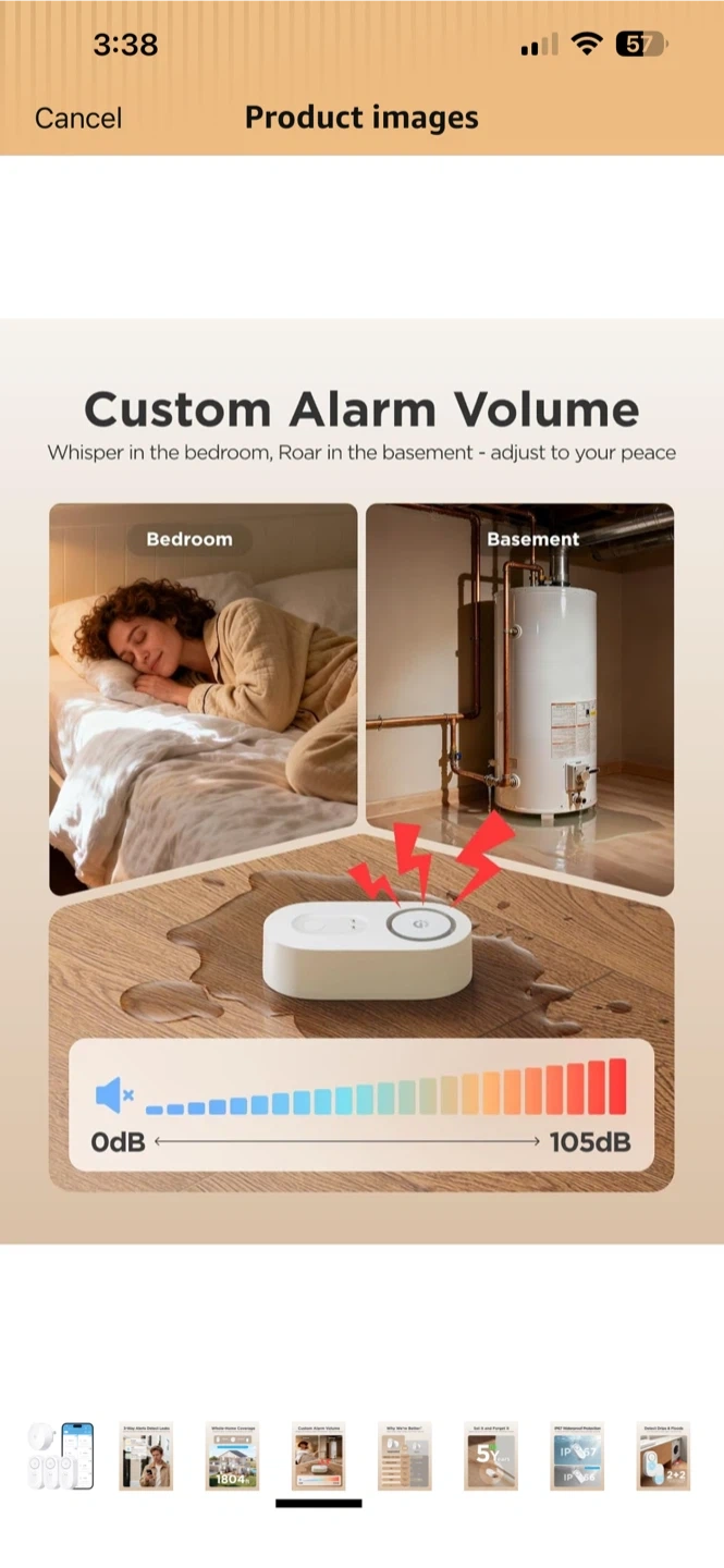 This GoveeLife water leak detector offers whole-home coverage with an 1804ft range. It sends SMS, email, and app alerts to notify you of leaks anywhere. The alarm volume is customizable from 0dB to 105dB, and it has a 5-year battery life.