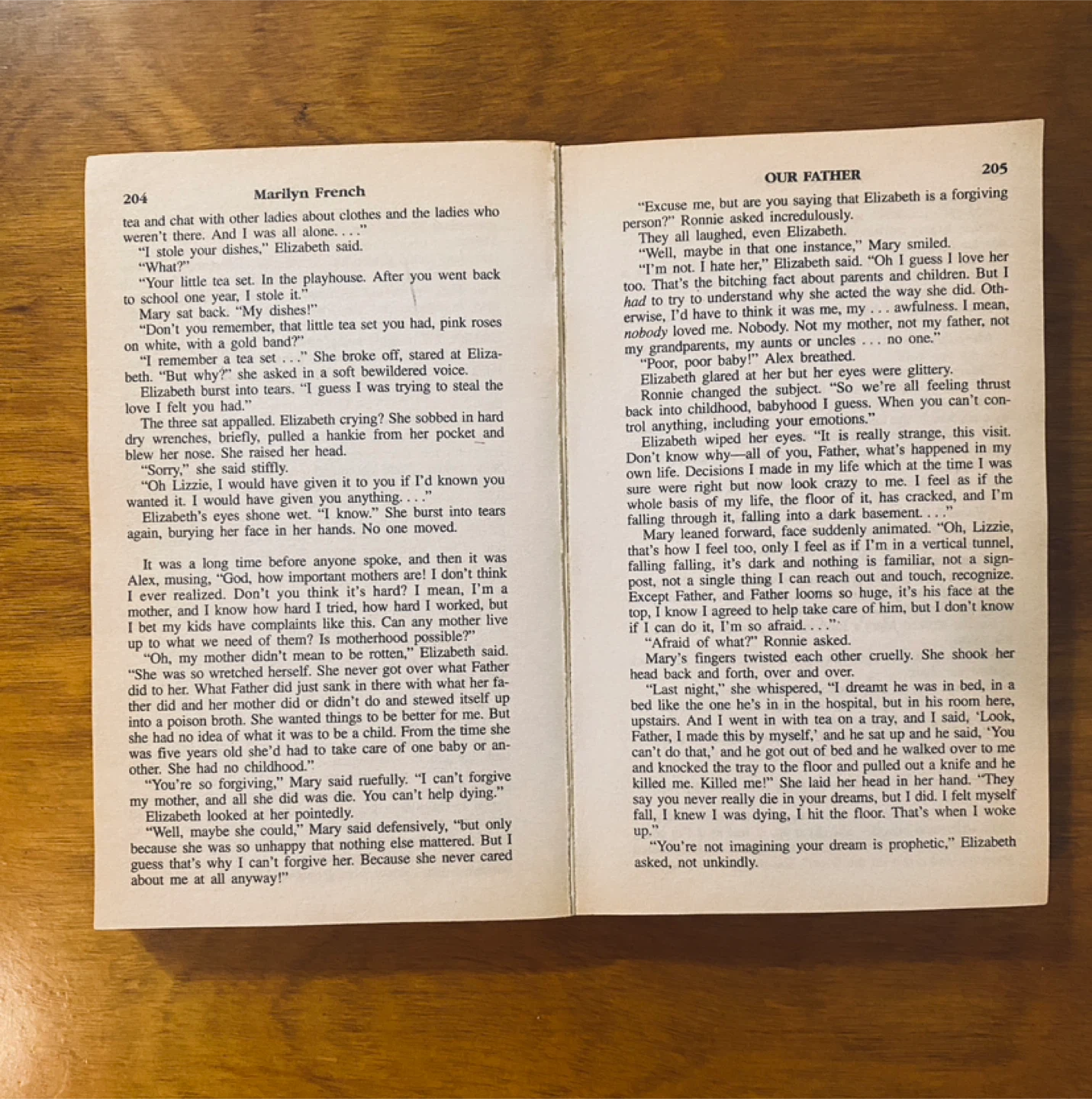 Buy & SellPaperback Novel – Fair ConditionPaperback Novel – Fair Condition$1“Our Father” - by Marilyn French. Fair condition. Fully readable. $1 cash. Pickup Sandy Hill.ConditionOkayWHERE TO MEETCheck LocationView MapSELLERShaieSandy Hill150 reviews0 chats·0 favorites·6 viewsSEND CHAT TO SELLERHi Shaie! I’m interested in your listing.Hi Shaie! I’m interested in your listing.Get the Karrot app to chatSign In to chat