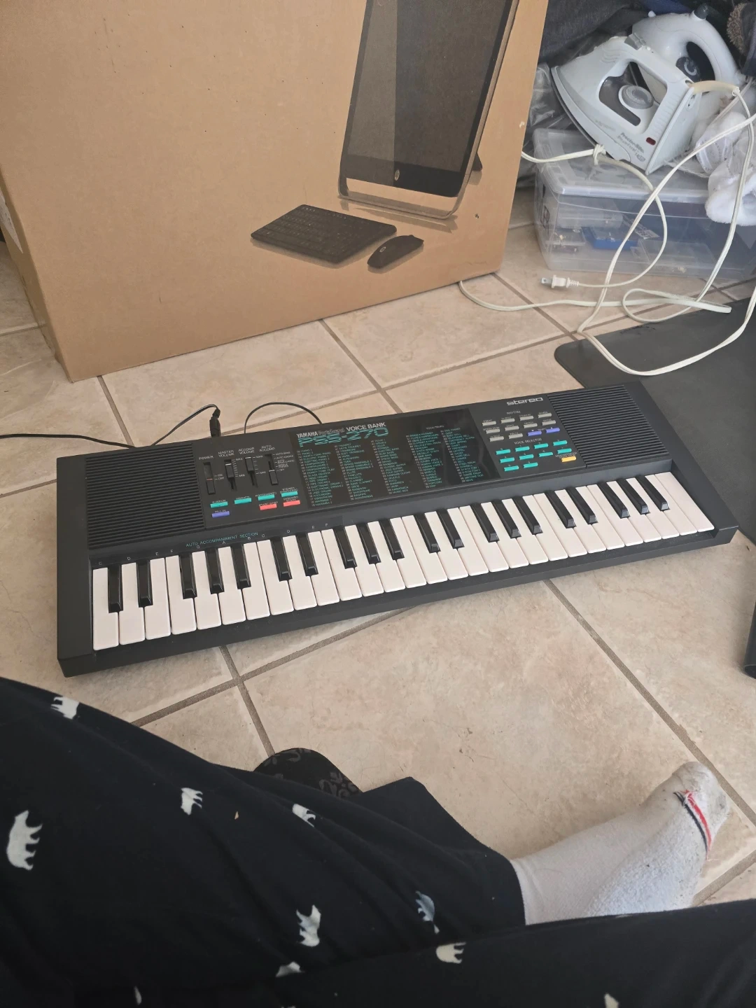 This is a Yamaha PSS-270 Voice Bank keyboard. It features multiple voice selection options for creative sound design. This keyboard is great for beginners looking to explore music creation.