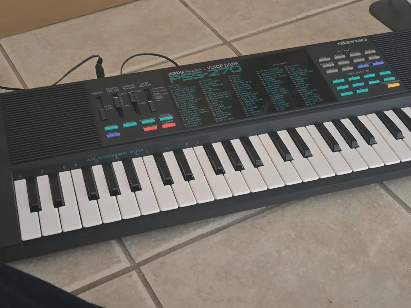 This is a Yamaha PSS-270 Voice Bank keyboard. It features multiple voice selection options for creative sound design. This keyboard is great for beginners looking to explore music creation.