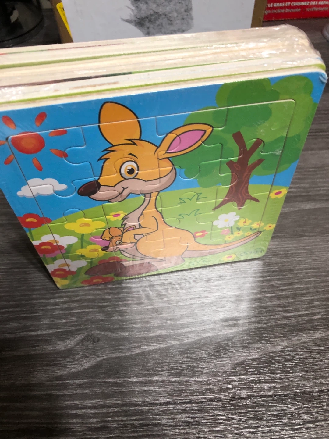 This is a brand new wooden puzzle featuring a cute kangaroo design! It's still sealed in its original packaging, perfect as a gift for boys and girls. The puzzle is made in China and ready for a new home!
