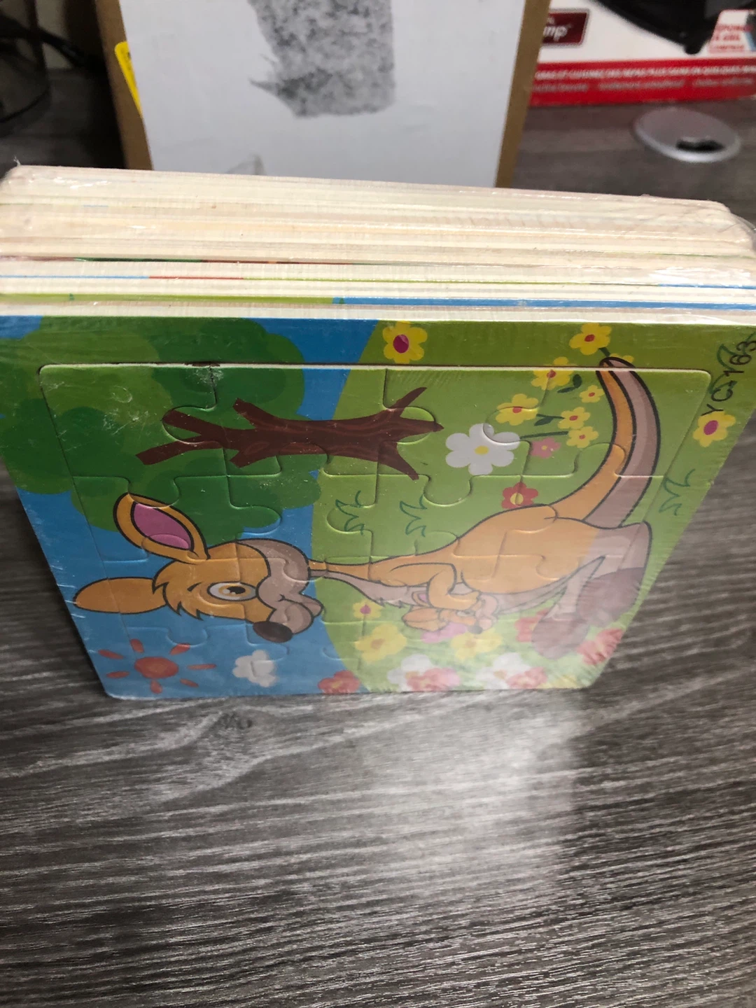 This is a brand new wooden puzzle featuring a cute kangaroo design! It's still sealed in its original packaging, perfect as a gift for boys and girls. The puzzle is made in China and ready for a new home!