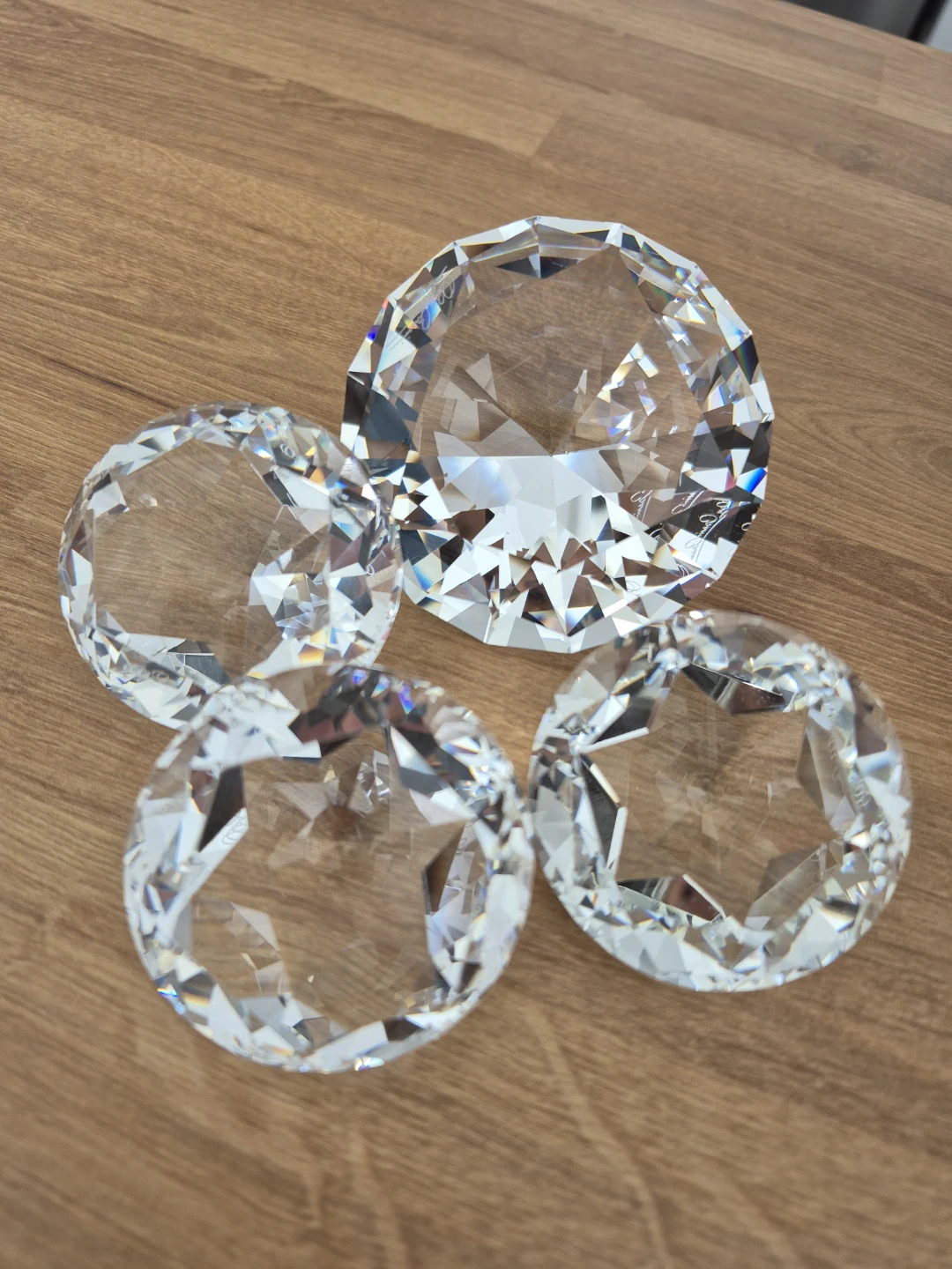 Stunning set of 4 genuine crystal diamond paperweights by renowned designer Oleg Cassini. These are high-quality, heavy crystals that refract light beautifully.