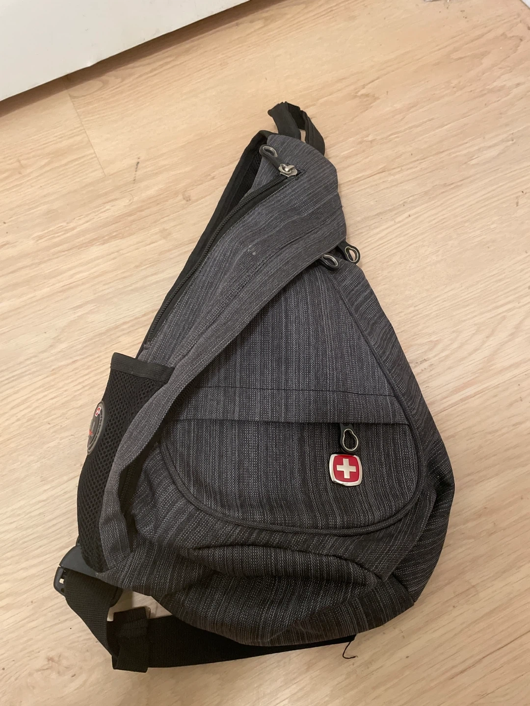 Check out this Swiss Gear sling bag! It's in great shape and ready for a new owner. The bag is a stylish grey colour and features the classic Swiss Gear logo. Perfect for carrying your essentials on the go