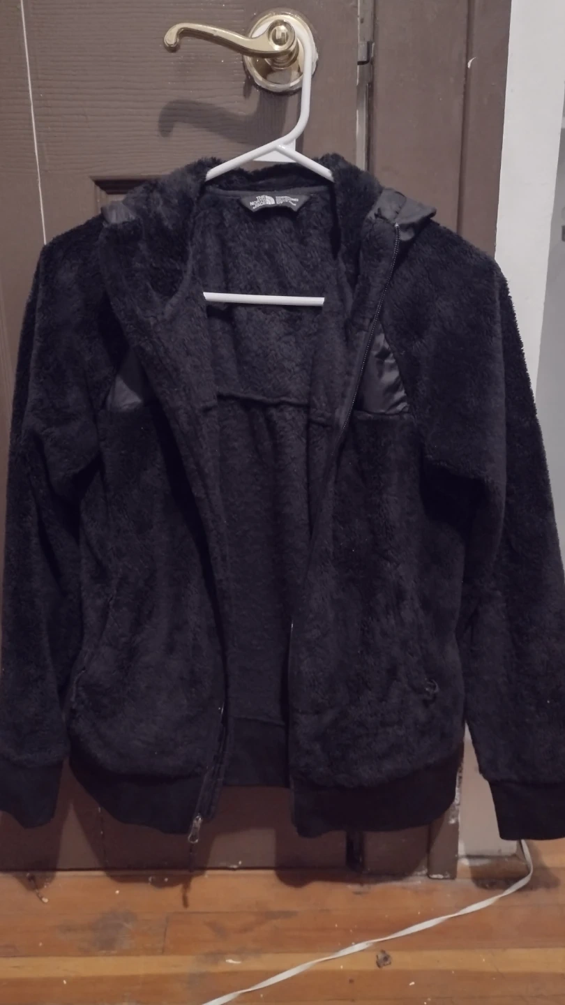 Selling a cozy black fleece hoodie from The North Face. It's a size small and in great condition! Perfect for layering or wearing on its own during cooler days