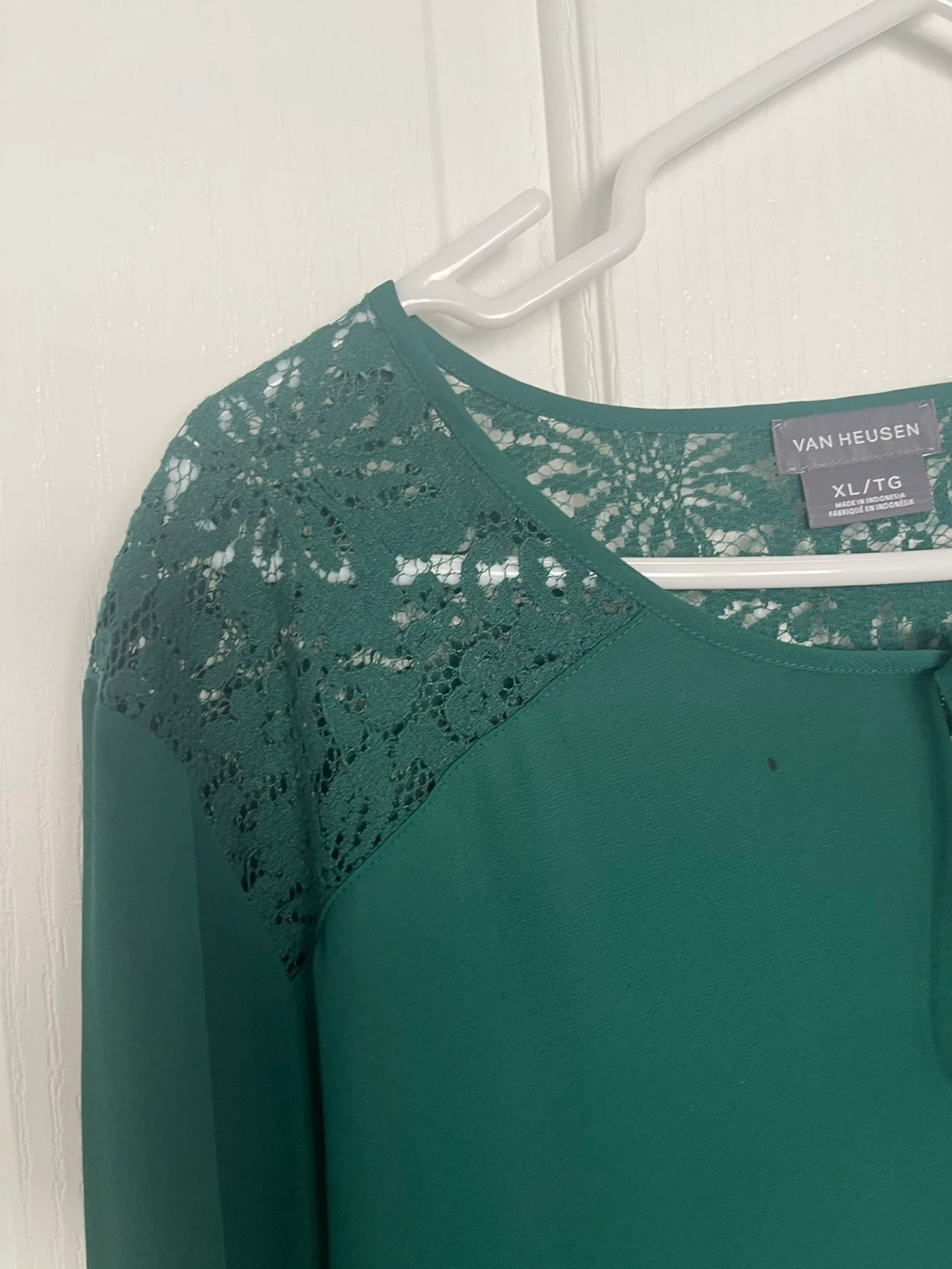 Van Heusen Women's Green Lace Inset Blouse XL/TG