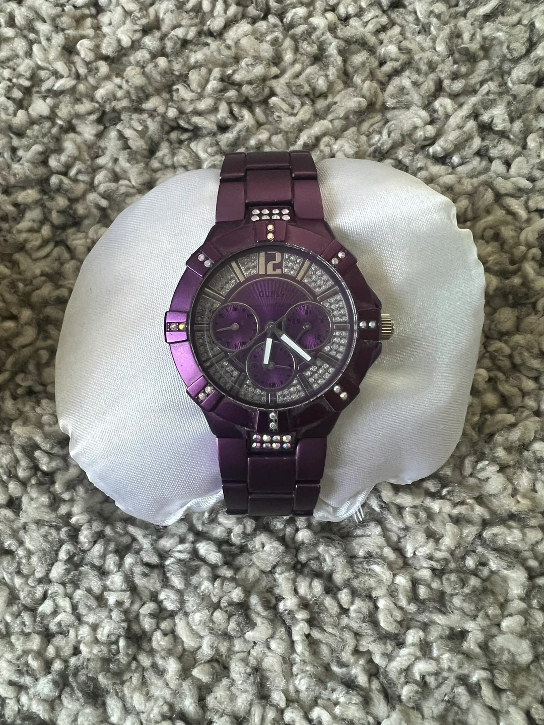 Selling a Guess purple watch. Needs a battery replacement. It comes with its original bag. A stylish accessory to complete your look!