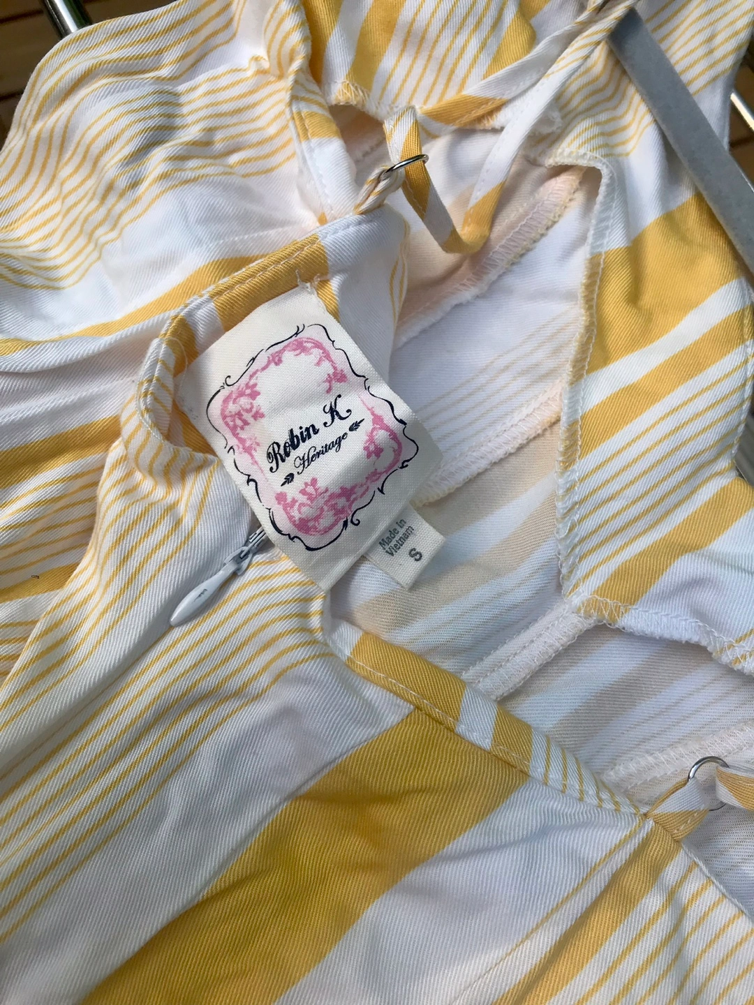 Cute Robin K Heritage romper in a yellow and white striped pattern! It's a size small and in great condition. Perfect for summer days!