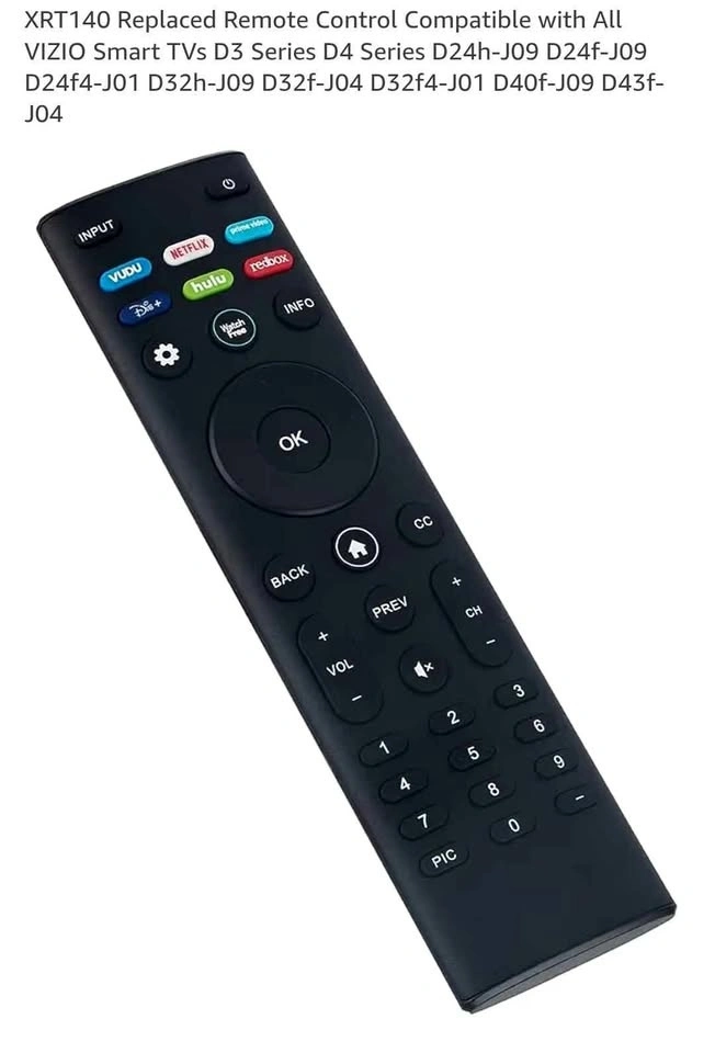 This is a replacement remote control compatible with many VIZIO Smart TV models, including the D3, D4, D24h-J09, D24f-J09, D24f4-J01, D32h-J09, D32f-J04, D32f4-J01, D40f-J09, and D43f-J04 series. Feel free to message if you have any questions!