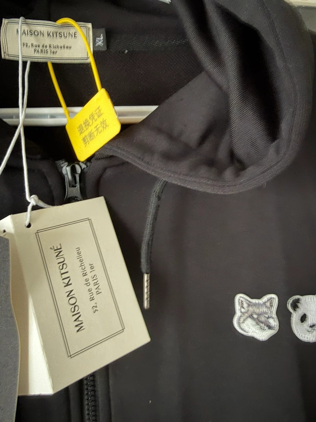 Buy & SellMaison Kitsuné Black Zip-Up Hoodie XLMaison Kitsuné Black Zip-Up Hoodie XL$150Maison Kitsuné black zip-up hoodie with fox and panda patches. Size XL. Includes original tags.ConditionNewSizeXL BrandMaison Kitsune WHERE TO MEETCheck LocationView MapSELLERverifiedLeilaniAlbion Falls650 reviews0 chats·0 favorites·2 viewsSEND CHAT TO SELLERHi Leilani! I’m interested in your listing.Hi Leilani! I’m interested in your listing.Get the Karrot app to chatSign In to chat