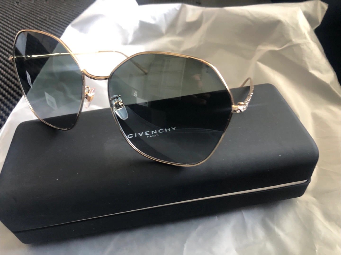 Selling a pair of stylish Givenchy sunglasses with a gold frame! They come with the original box, so they're well-protected. These sunnies are perfect for adding a touch of elegance to any outfit!