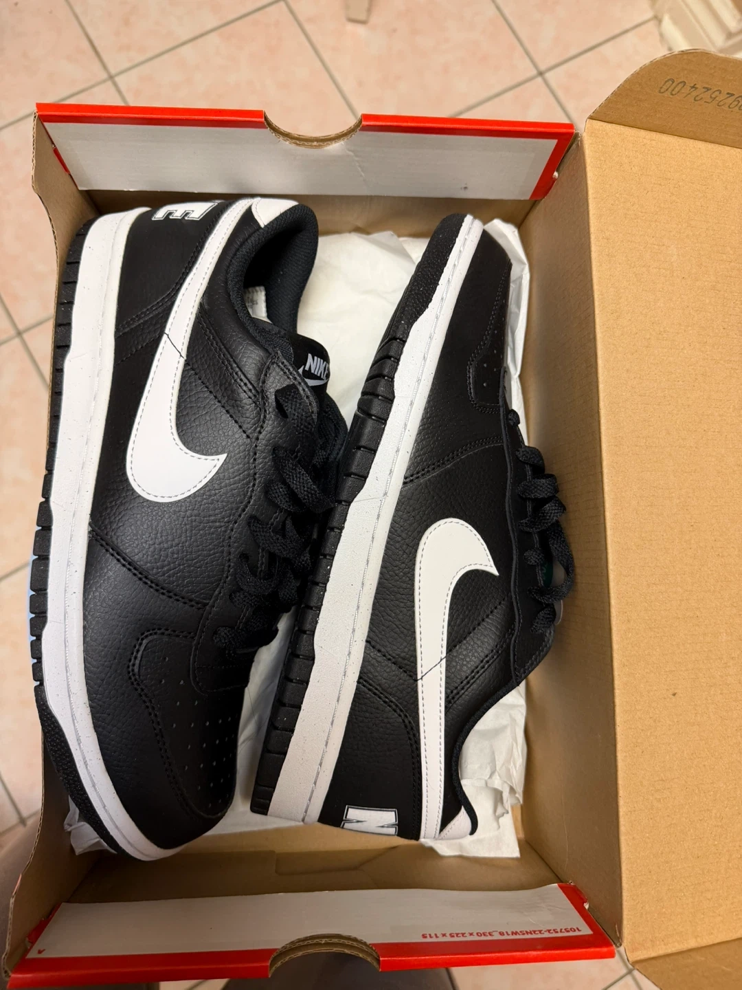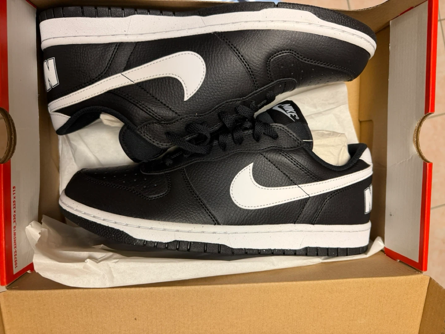 Brand new Nike Court Vision Low men's shoes in black and white. These sneakers feature a durable leather upper and a classic lace-up closure. They're perfect for everyday wear or a casual athletic look.