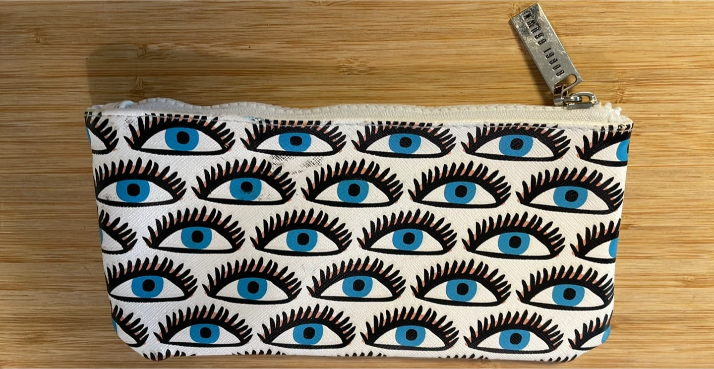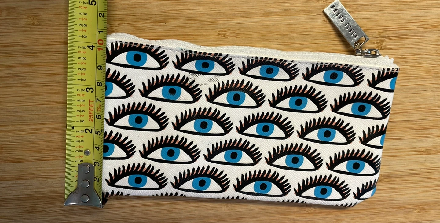 Super cute Bobbi Brown zip pouch with a fun eye design! It's in great condition and perfect for carrying your essentials. Approximately 5 inches wide and 4 inches tall