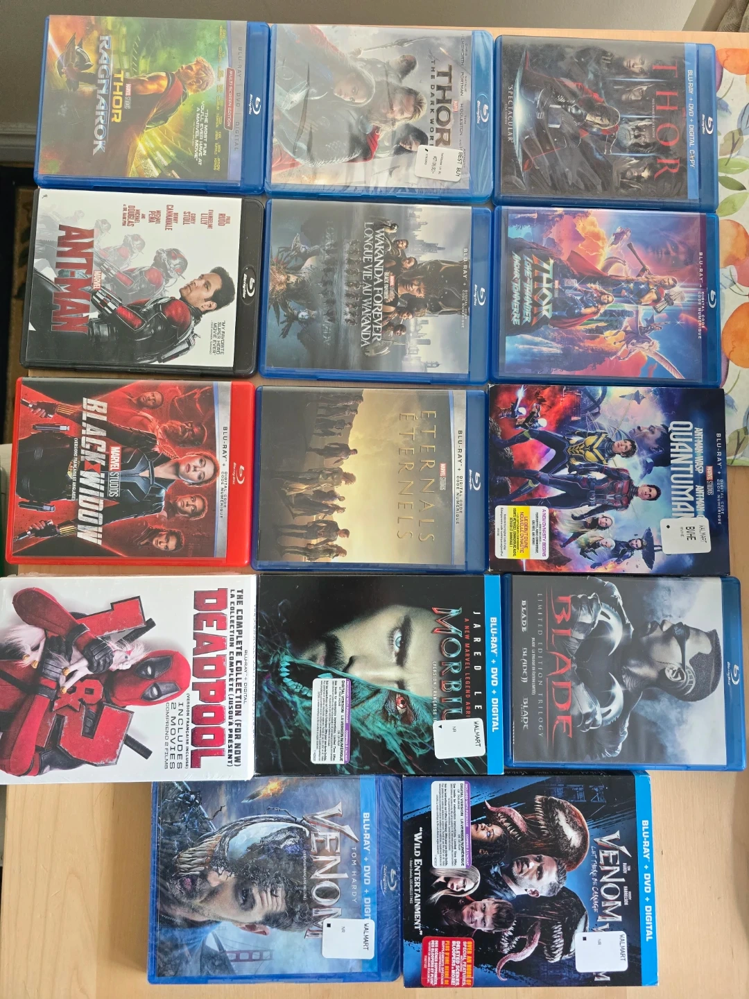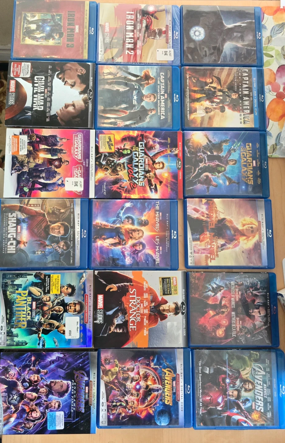 Selling a collection of Marvel Cinematic Universe Blu-ray movies. Includes Iron Man 1-3, Captain America: The First Avenger, Winter Soldier, and Civil War, Guardians of the Galaxy Vol. 1 & 2, Thor: Ragnarok, Ant-Man, Doctor Strange, Black Widow, Shang-Chi, The Eternals, and Avengers: Endgame. These discs are in great condition and ready for a new home!
