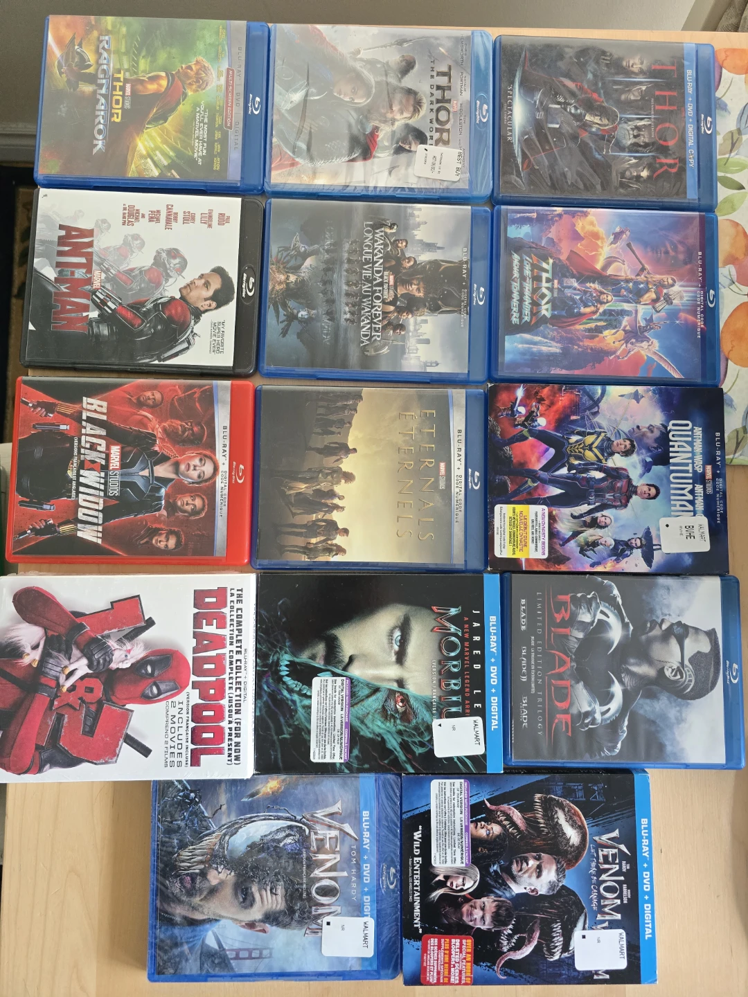 Selling a collection of Marvel Cinematic Universe Blu-ray movies. Includes Iron Man 1-3, Captain America: The First Avenger, Winter Soldier, and Civil War, Guardians of the Galaxy Vol. 1 & 2, Thor: Ragnarok, Ant-Man, Doctor Strange, Black Widow, Shang-Chi, The Eternals, and Avengers: Endgame. These discs are in great condition and ready for a new home!