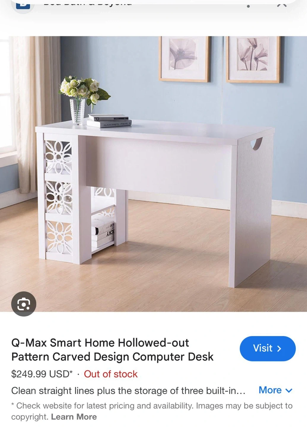 65Selling a Q-Max Smart Home computer desk with a hollowed-out pattern carved design. It features clean, straight lines and three built-in storage spaces. Comes with the original box (open box) it was too big for my apartment.