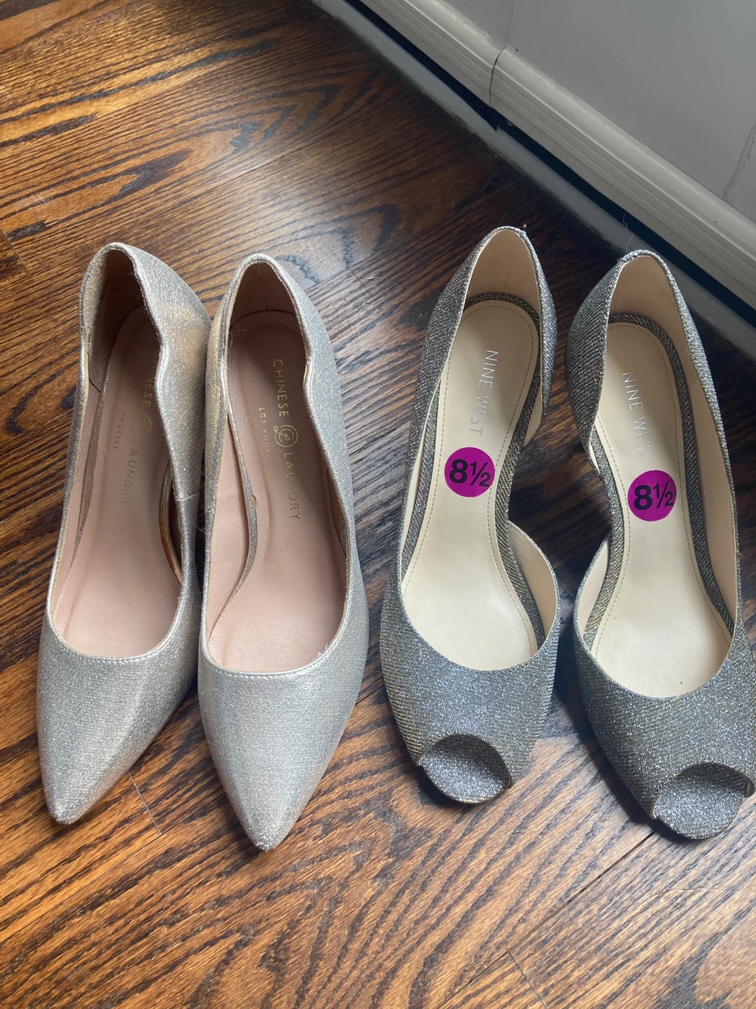 Two pairs of ladies heels, size 8.5 barely worn. Both are shimmery/metallic