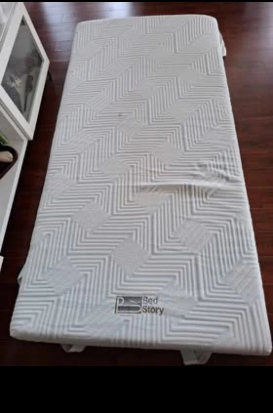 This is a Bed Story Twin XL mattress topper. 3 to 4 inches thickness. Used by my daughter for 1 school yr in residence. Clean n stain free