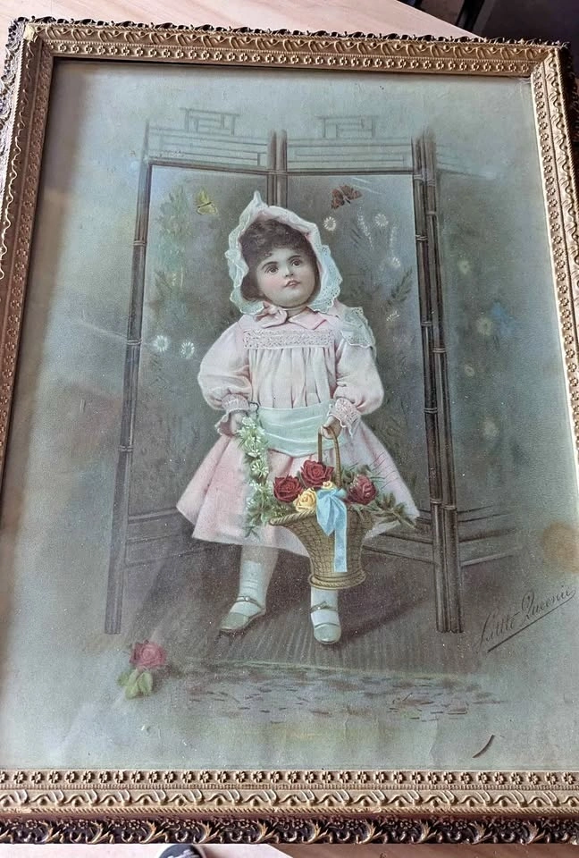 This antique Canadian print is from the Victorian era and comes in its original gilded frame. 'Little Queenie' is an original chromo-lithograph created in 1896 as a promotional supplement by the Weekly Star and the Family Herald newspapers, gifted to new subscribers. The print measures 23x18 inches and has wood backing. Asking $65. Pickup in Grimsby.