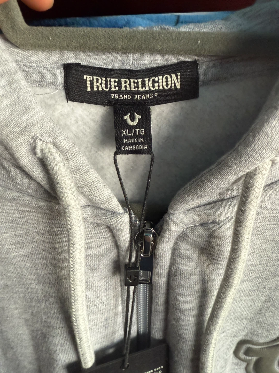 True Religion hoodie in size XL. It's a heather grey core zip up hoodie.