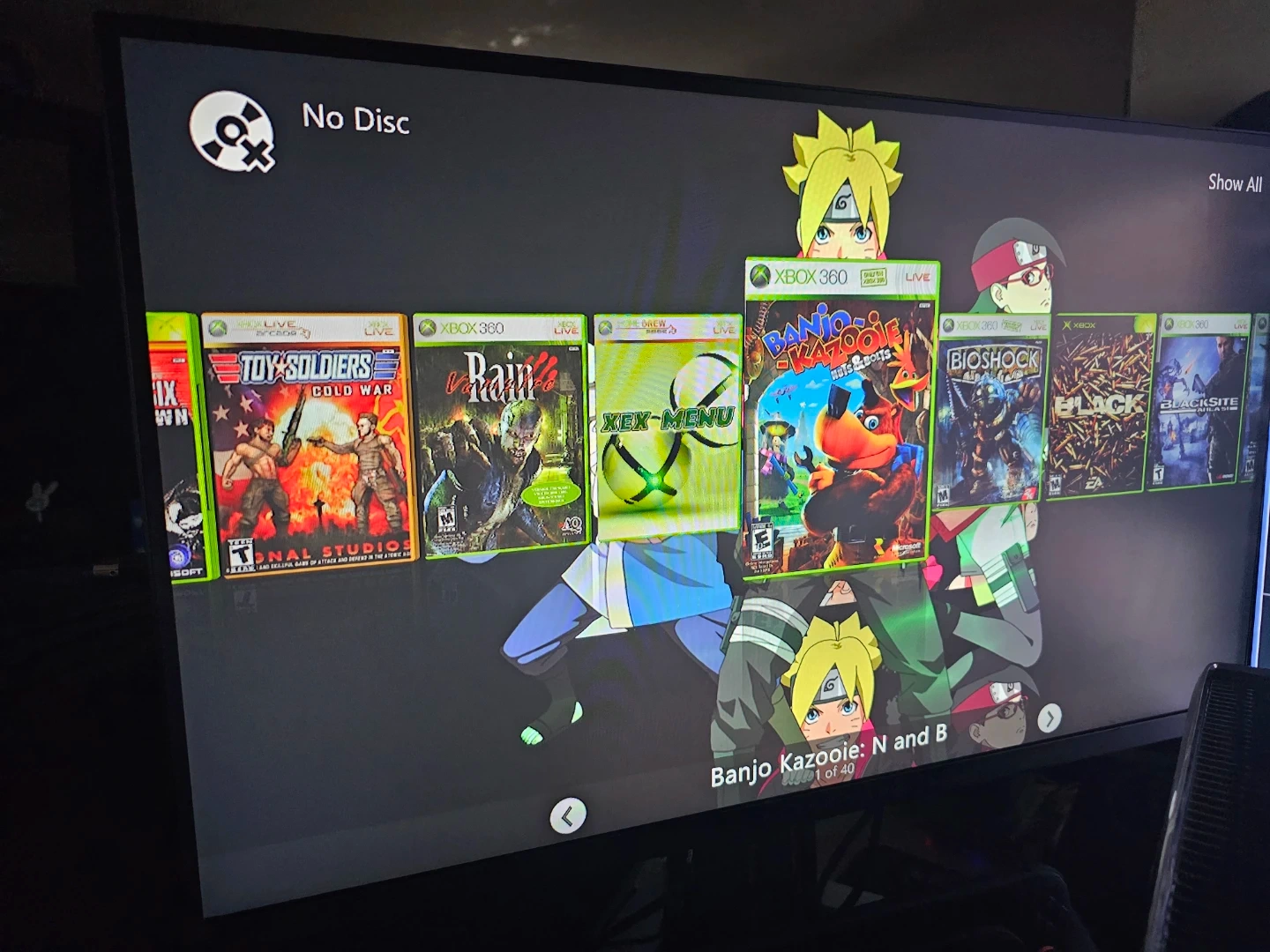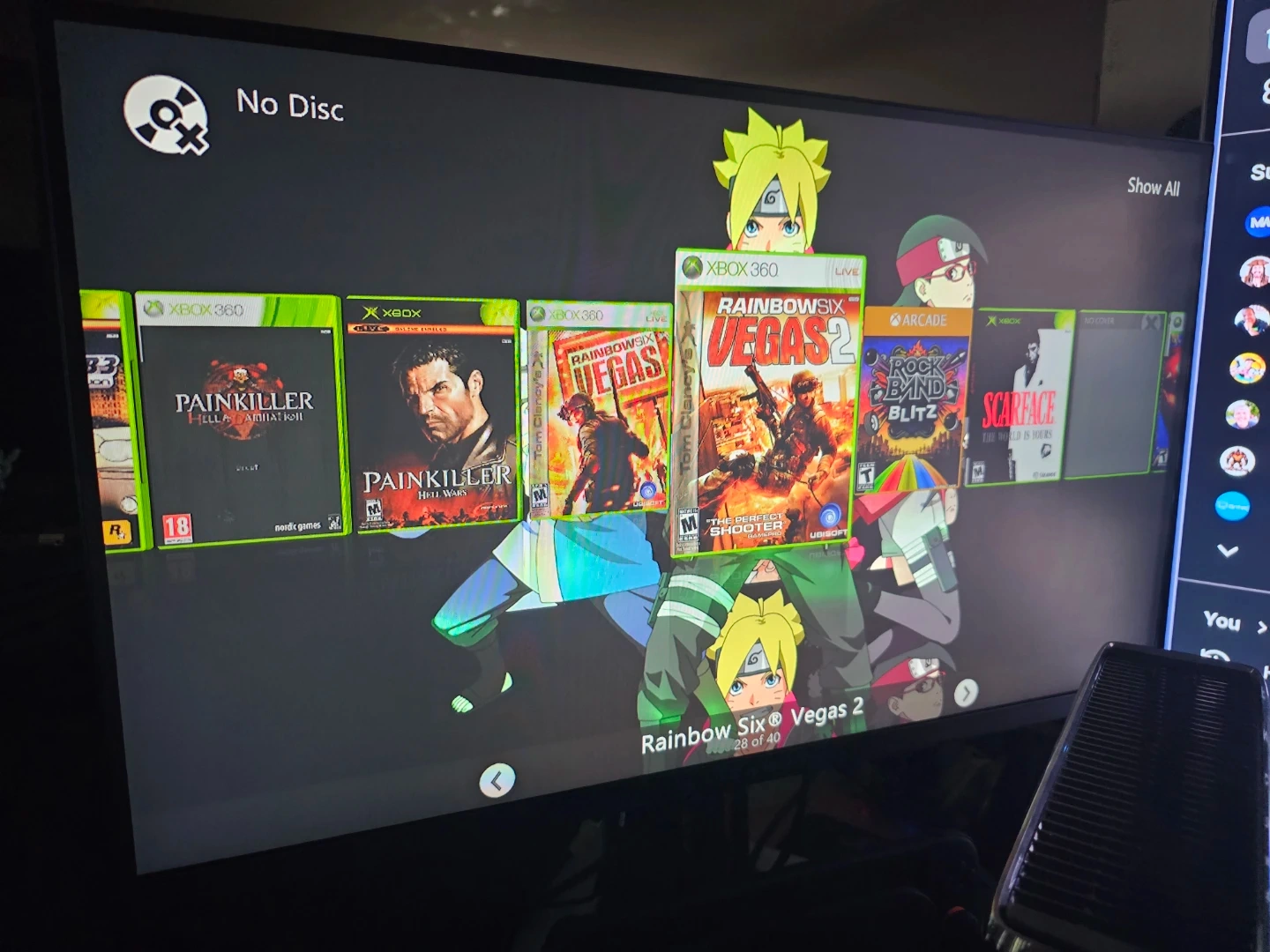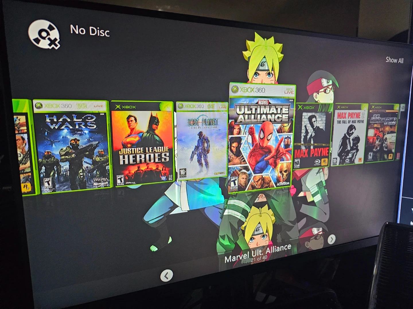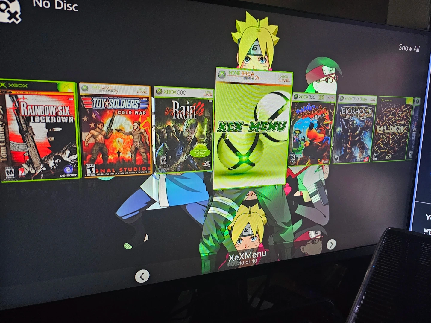 Modded Xbox 360 with controller,mod runs off internal hard drive which automatically boots up when turned on.Has about 26 and 12 Xbox game