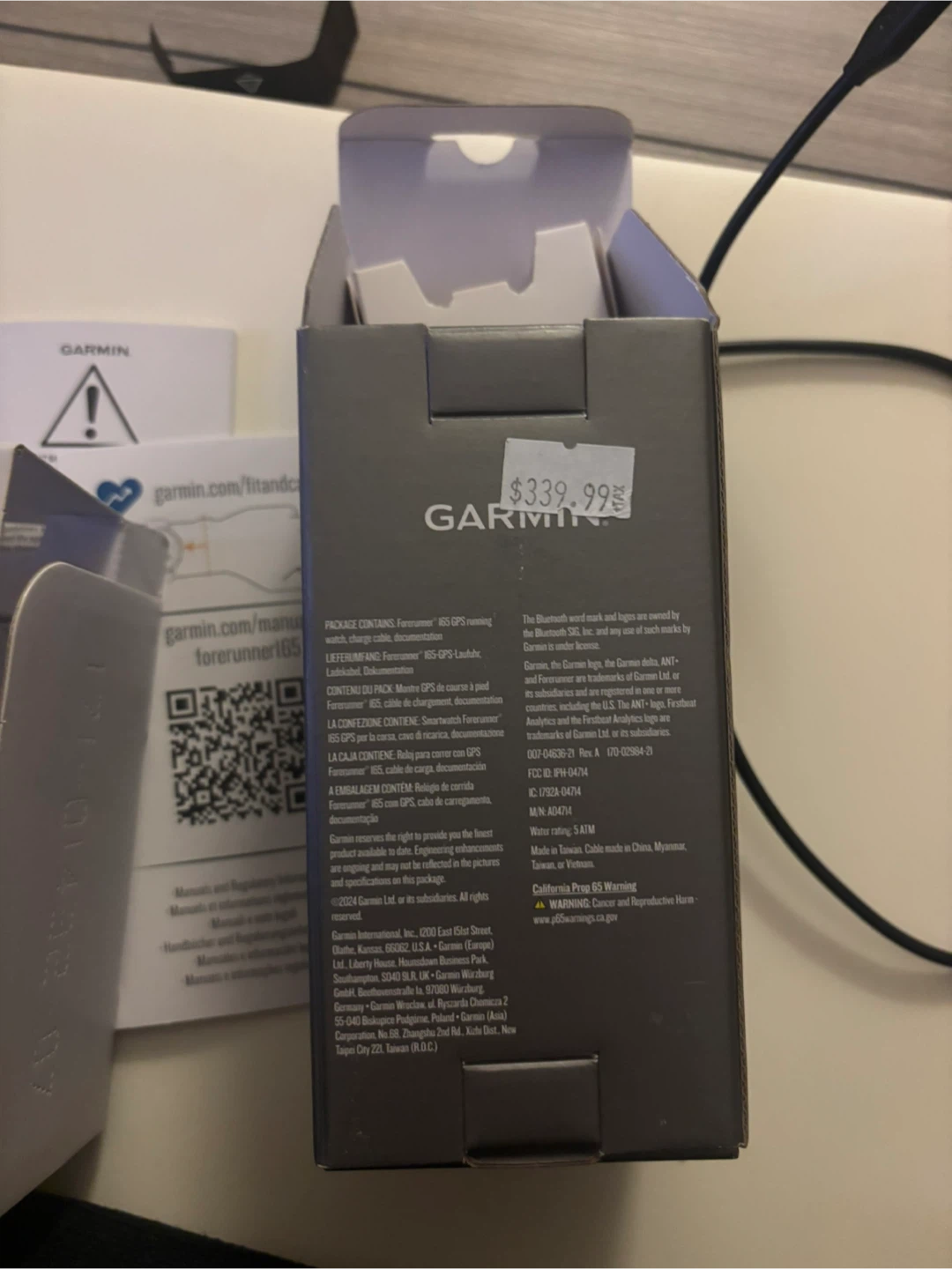 Garmin Forerunner 165 GPS running smartwatch. Barely used. Good condition. No scratch. AMOLED display. Includes charging cable. Also comes with a Healing Shield screen protector.