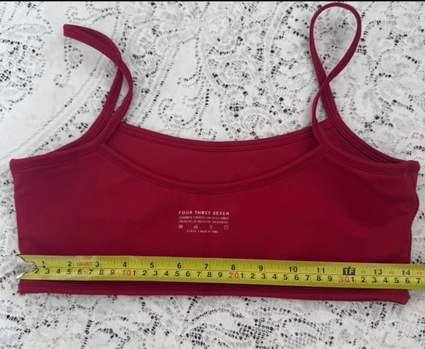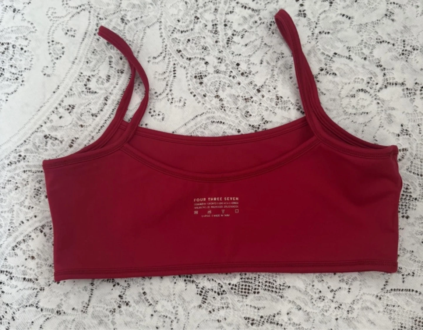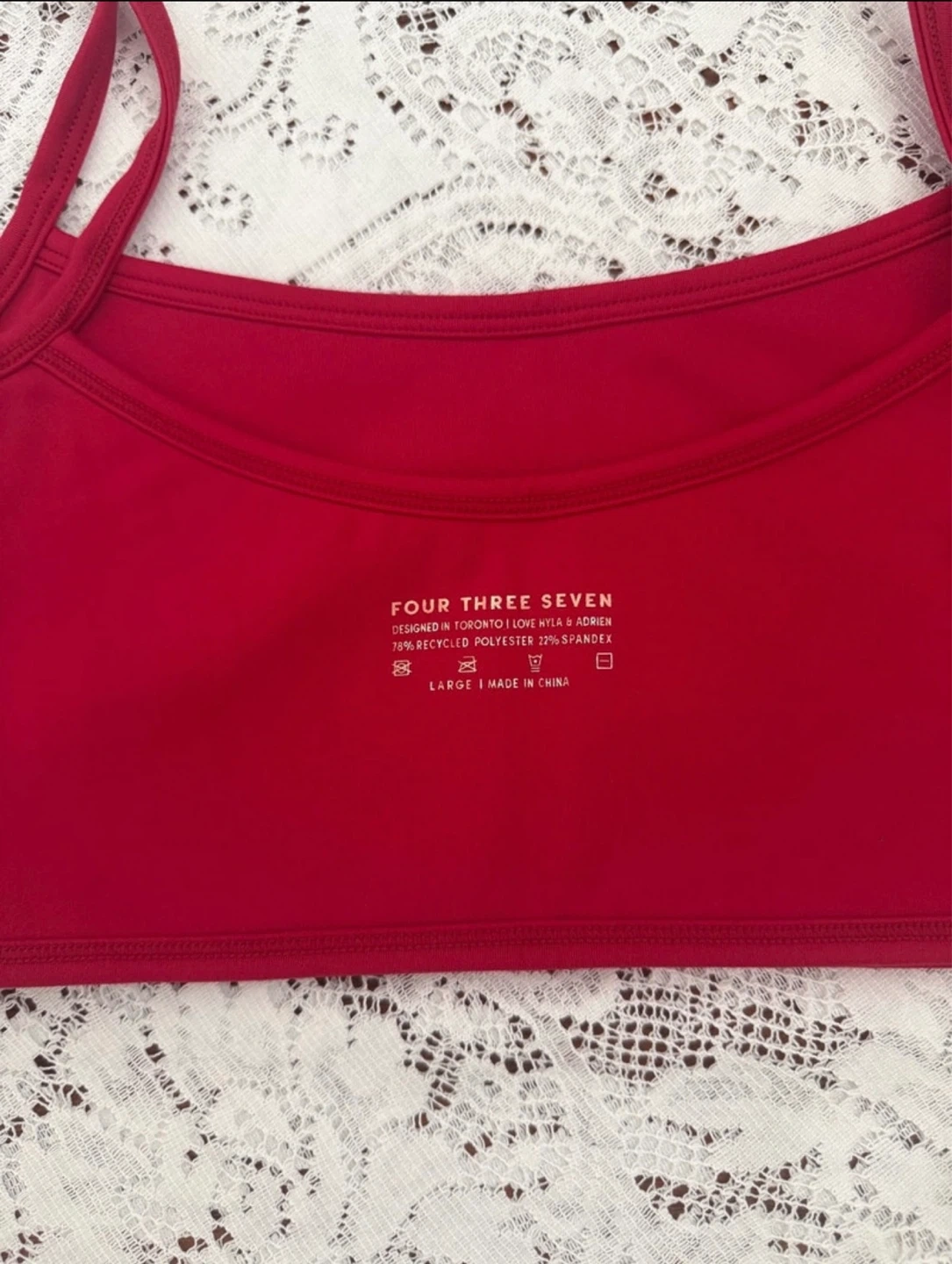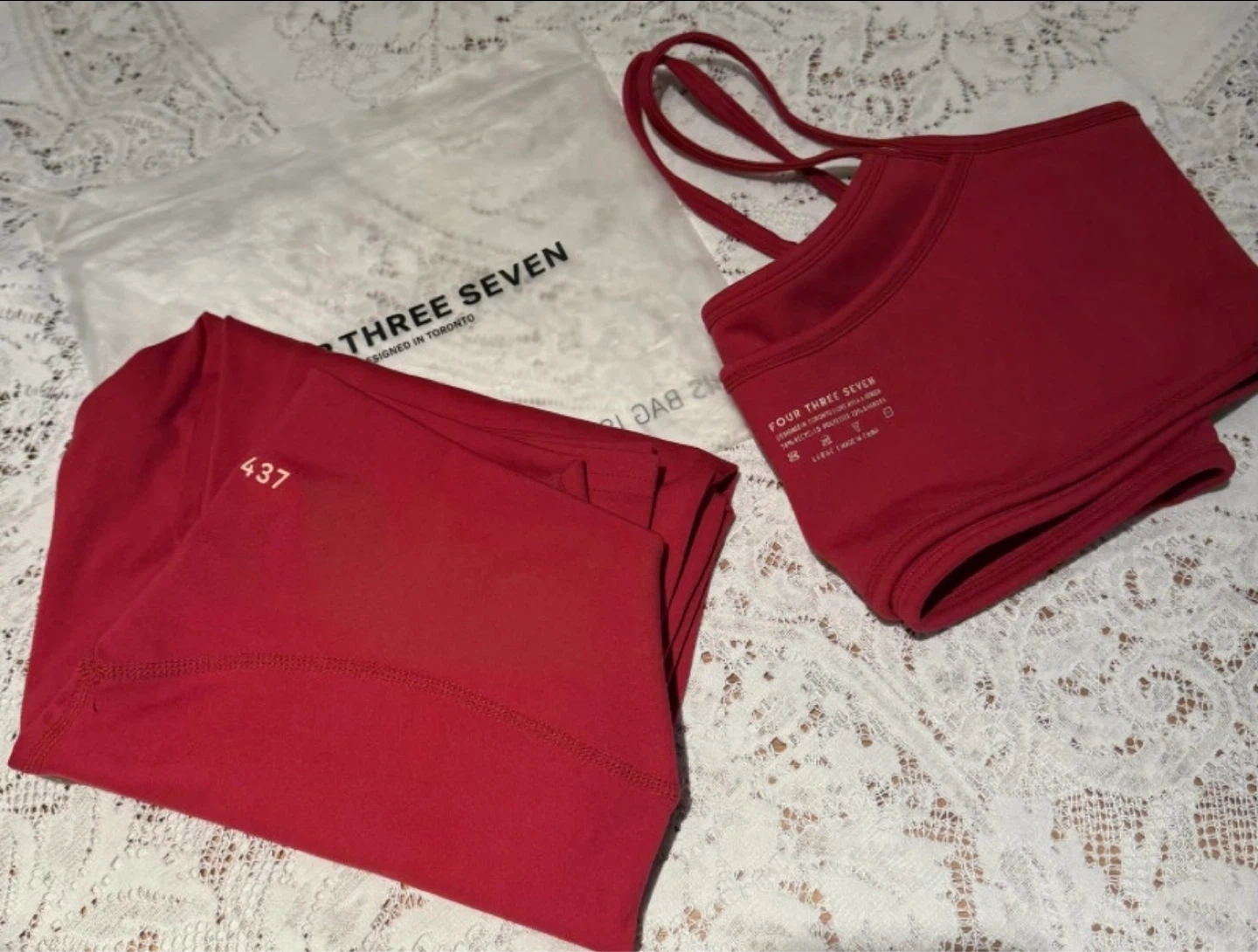 Selling a vibrant red activewear set that includes a supportive sports bra top and matching leggings!