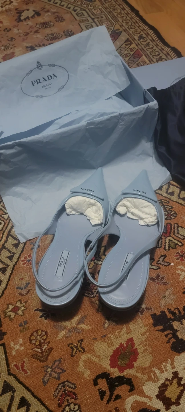 Prada women's light blue leather thong sandals. Includes original box and dust bag. Made in Italy.