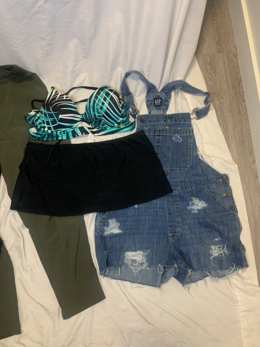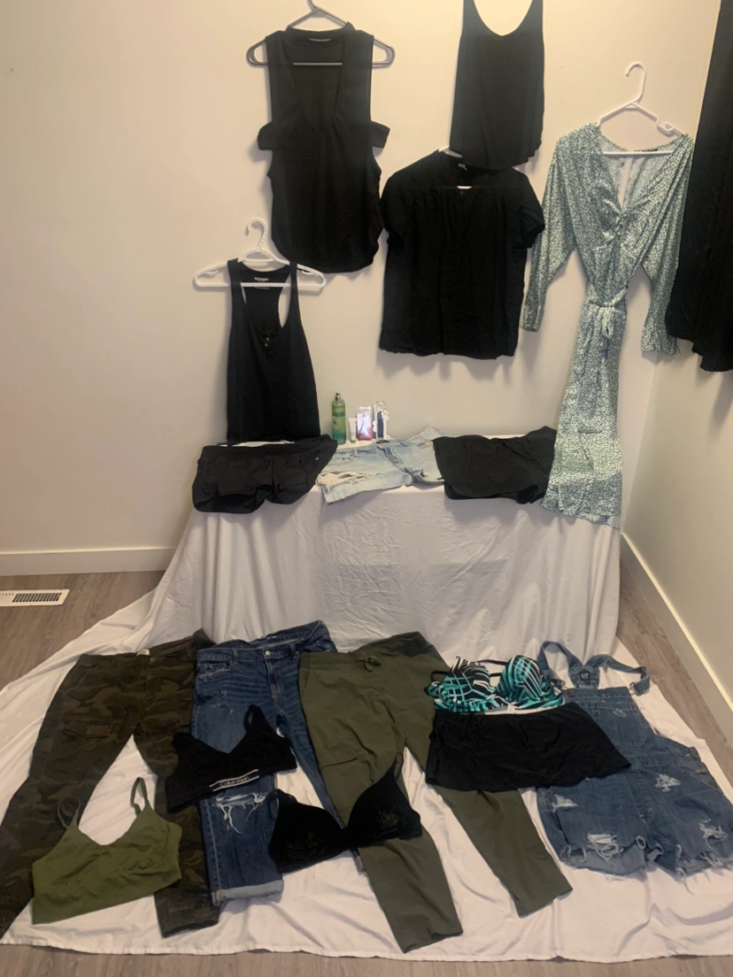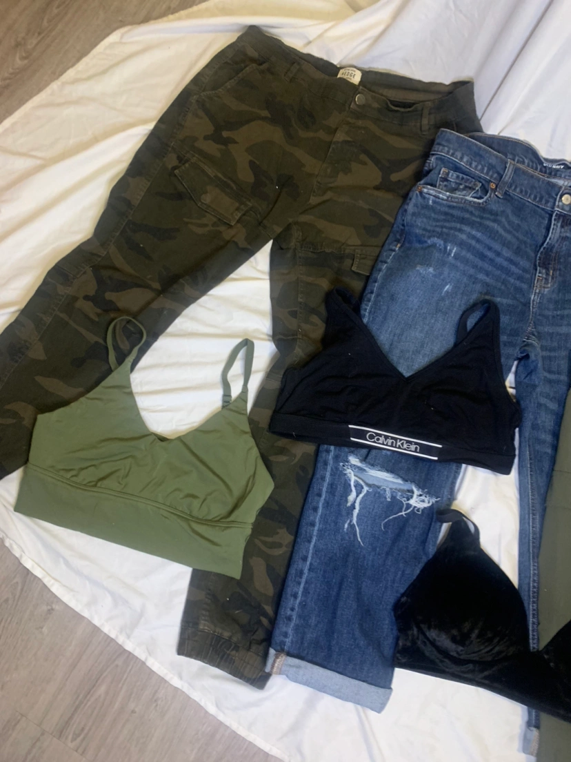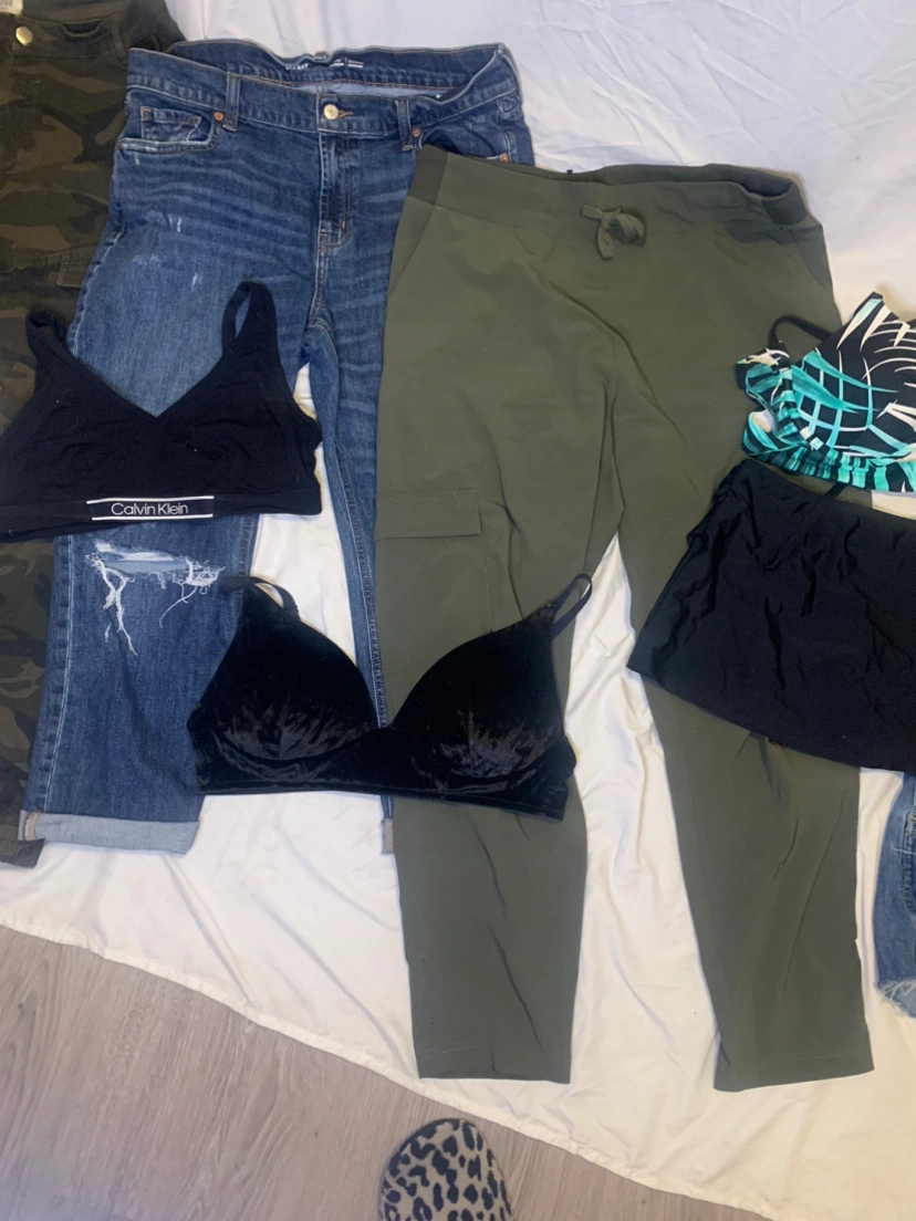 Green/denim lot woman’s L with 20+ items at one low price