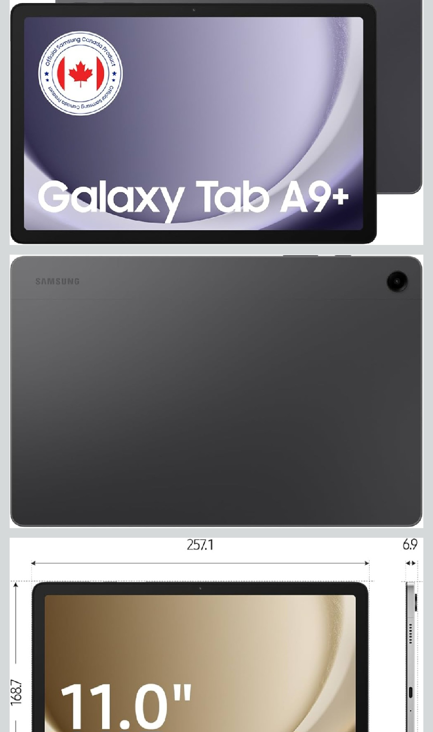 Selling a brand new Samsung Galaxy Tab A9+ with an 11-inch screen! It's still in its original packaging and ready for a new home. The dimensions are 257.1 x 168.7 x 6.9 mm.