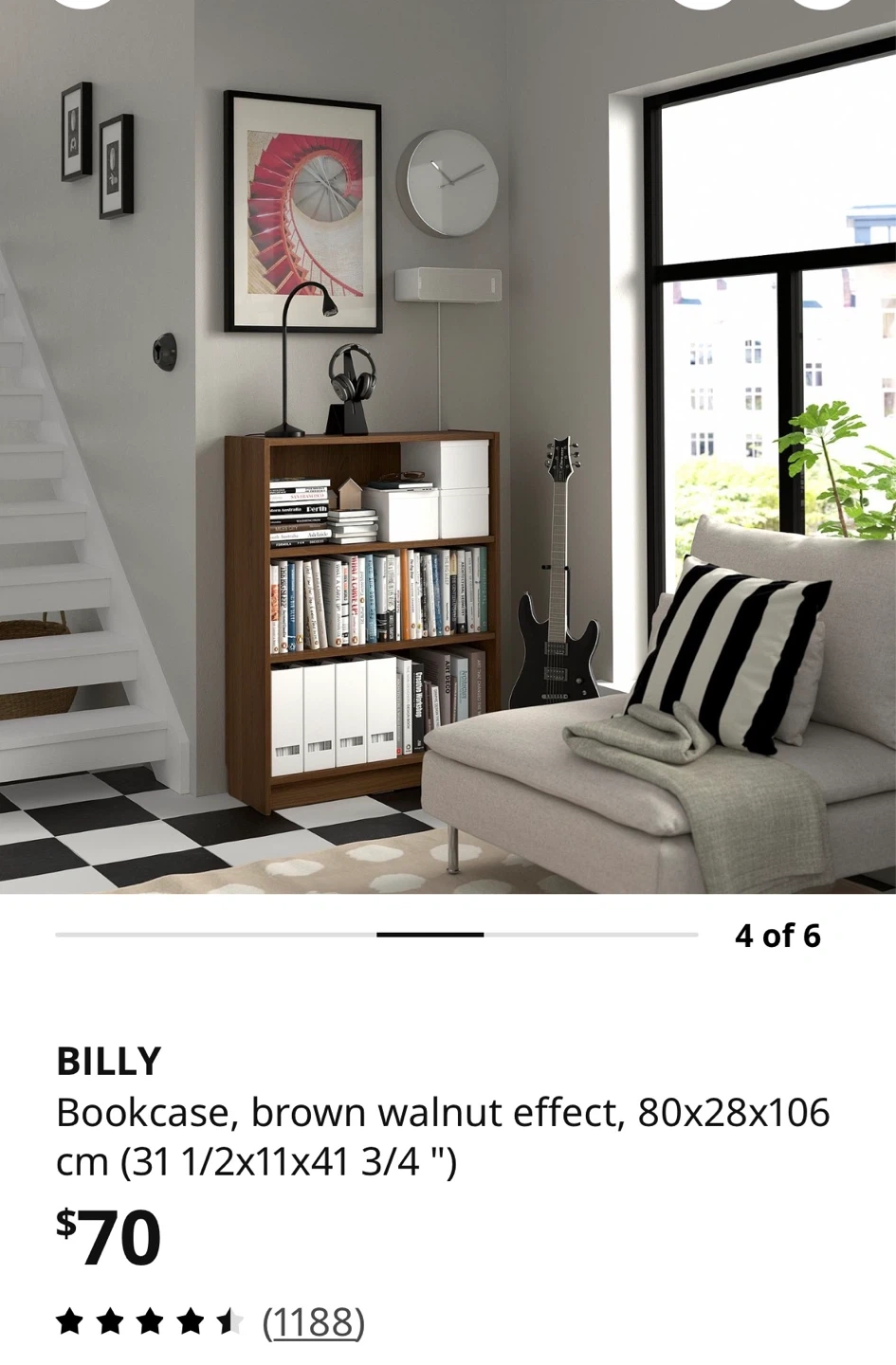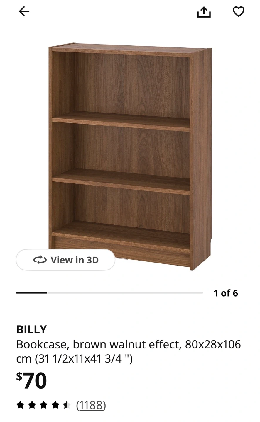 This is the BILLY bookcase from IKEA. It has a brown walnut effect finish. The dimensions are 80x28x106 cm.